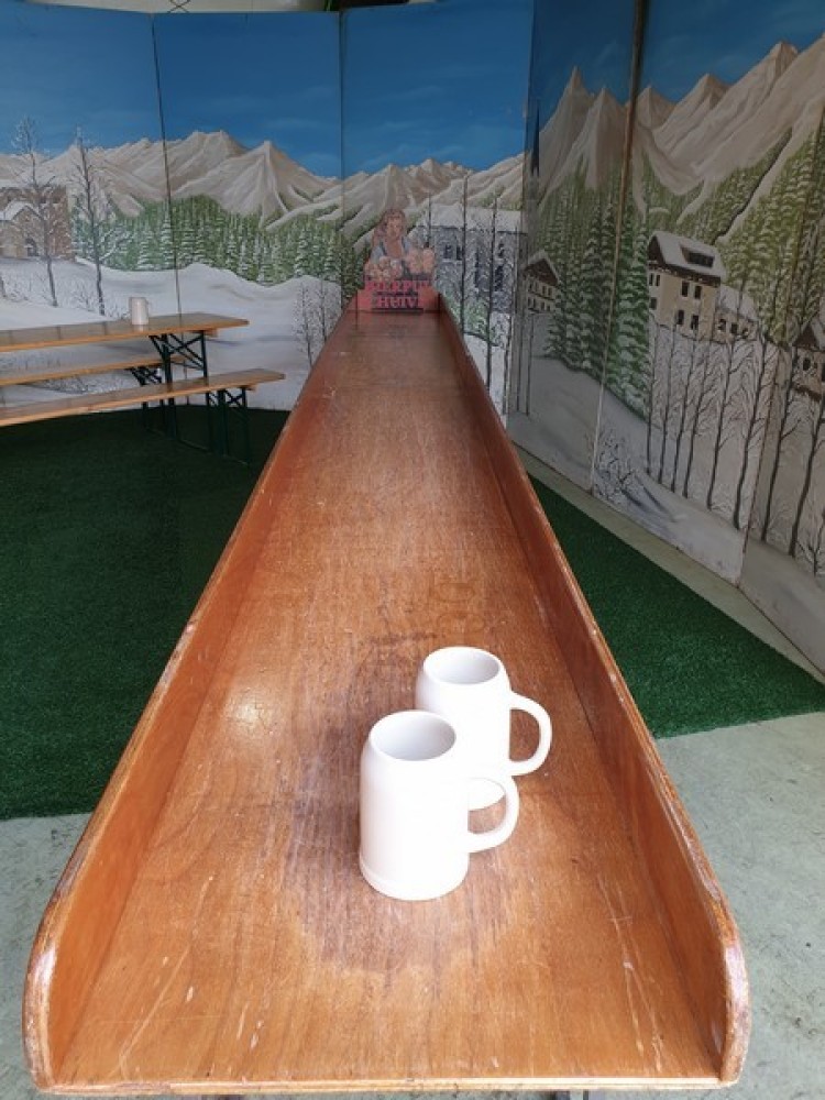 Het doel is om de pullen zo ver mogelijk over de baan te schuiven om punten te verdienen, maar schuif je te ver dan verlies je weer alle punten. Ideaal voor een leuk après-ski avondje. Ga de strijd aan met je tegenstander! Wie sprokkelt de meeste punten bij elkaar?