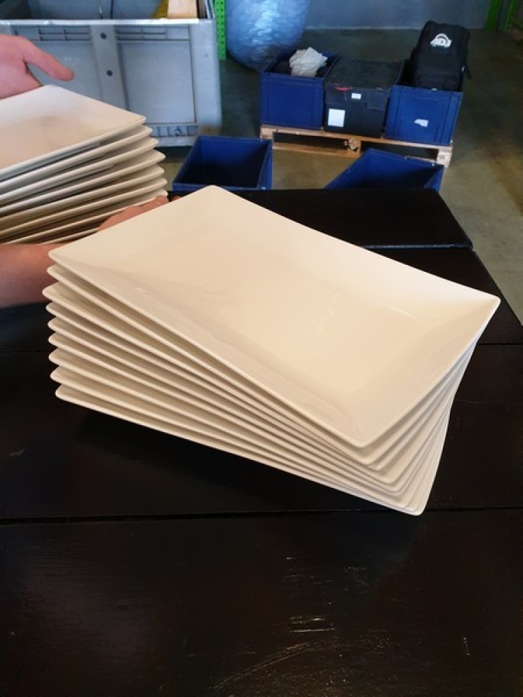 Dinerbord - Avantgarde - Rechthoek curve 32x20cm (Korf met 20 stuks) past gemakkelijk in vrijwel elke auto en is dus zeer makkelijk te vervoeren.