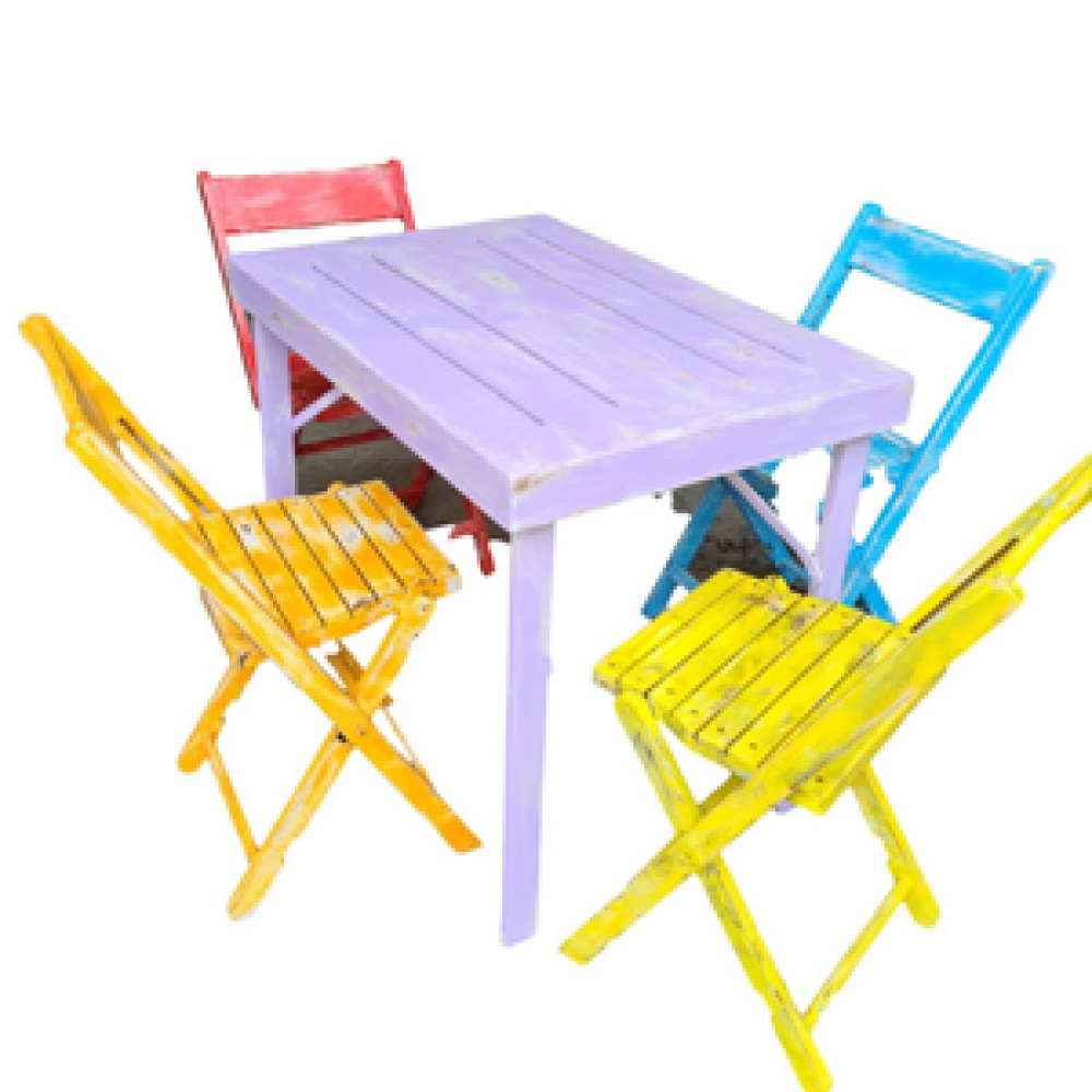 Incl: 1 terrastafel en 4 gekleurde klapstoelen