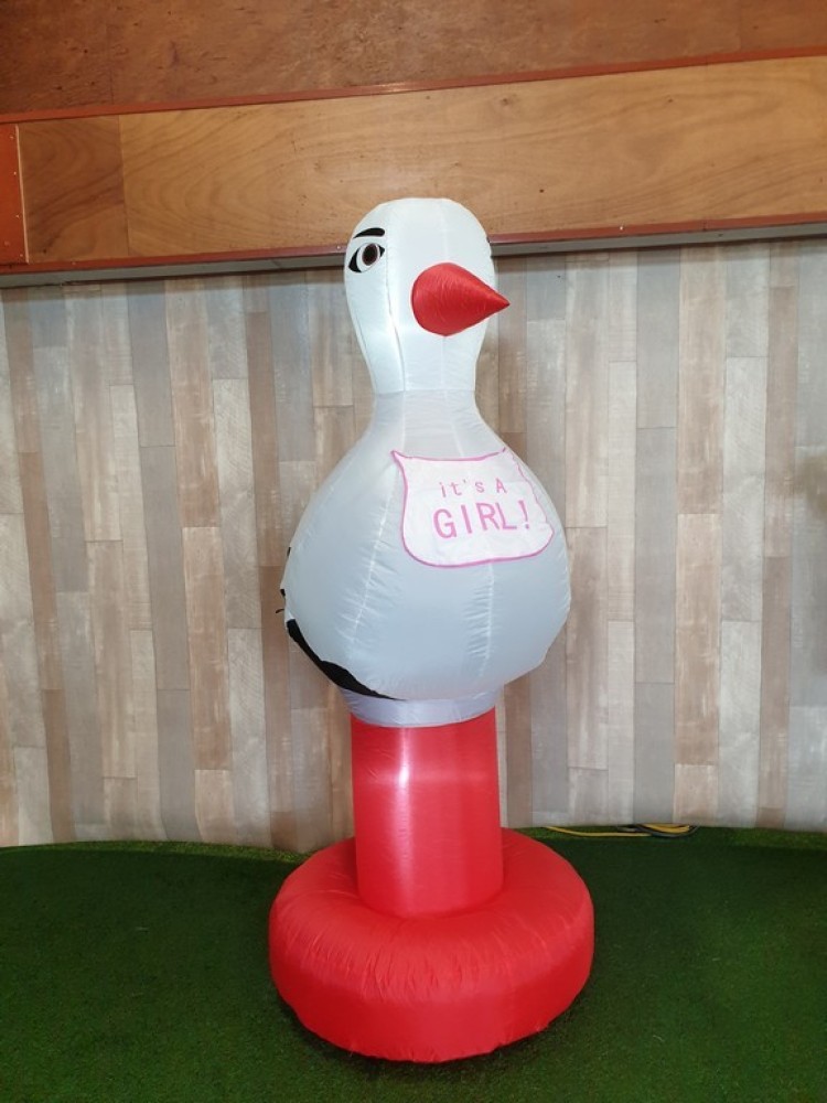 Zeer leuk om in de babykamer, de woonkamer van de kersverse ouders of binnen bij de feestlocatie tijdens de babyshower of kraamfeest. Daarnaast kan de pop uiteraard ook buiten worden gebruikt: op het balkon of onder de carport. Let op: het figuur dient op een windvrije plek te worden geplaatst. Met deze eyecatcher is er geen ontkomen aan: het zal niemand ontgaan dat het groot feest is.