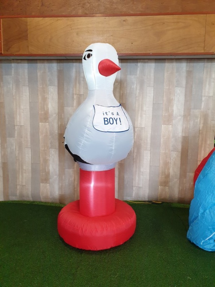 De Indoor ooievaar wordt geleverd inclusief geluidsarme interne blower. Tijdens het gebruik van deze opblaasbare eyecatcher dient de blower constant aan te blijven staan. Sluit deze ten alle tijden aan op een geaard stopcontact of verlengkabel.