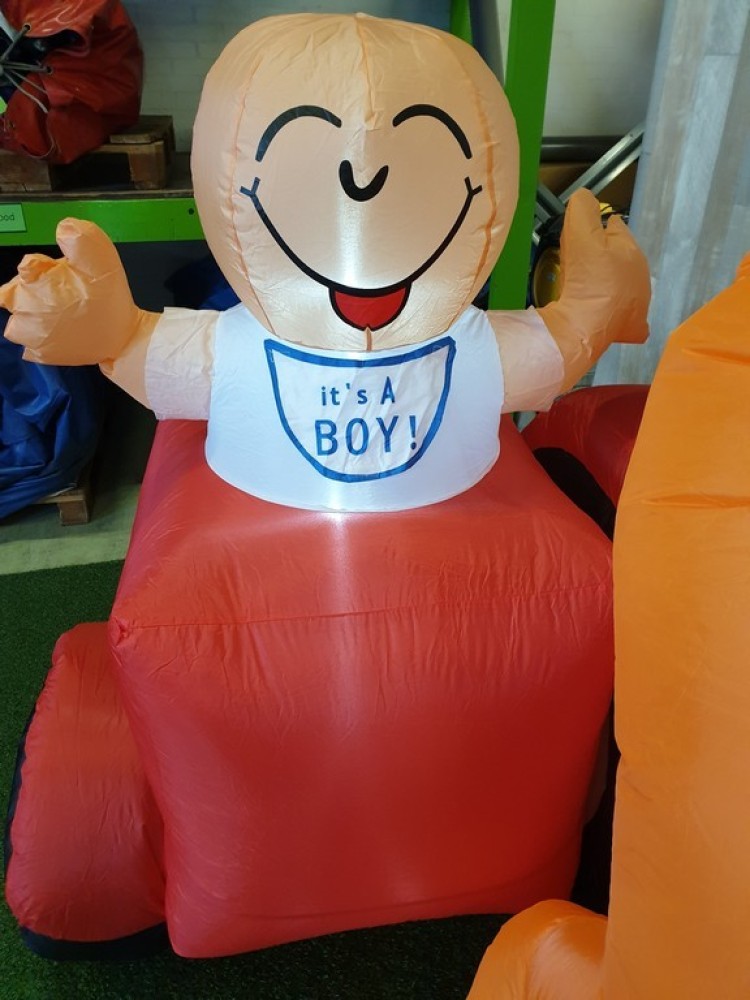Zeer leuk om in de babykamer, de woonkamer van de kersverse ouders of binnen bij de feestlocatie tijdens de babyshower of kraamfeest. Daarnaast kan de pop uiteraard ook buiten worden gebruikt: op het balkon of onder de carport. Let op: het figuur dient op een windvrije plek te worden geplaatst. Met deze eyecatcher is er geen ontkomen aan: het zal niemand ontgaan dat het groot feest is. Verder is dit opblaasfiguur voorzien van ingebouwde verlichting waardoor hij ook in de avond een opvallende verschijning is.