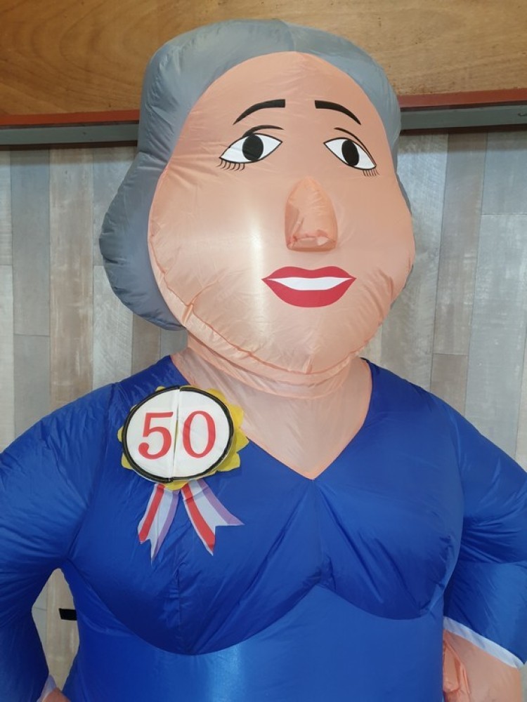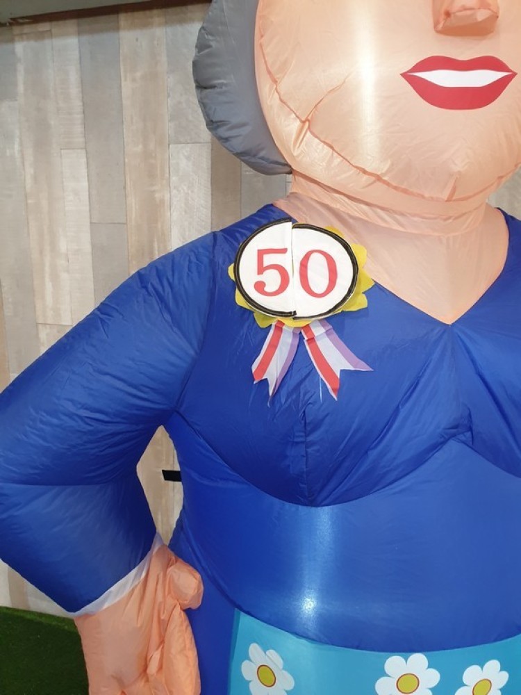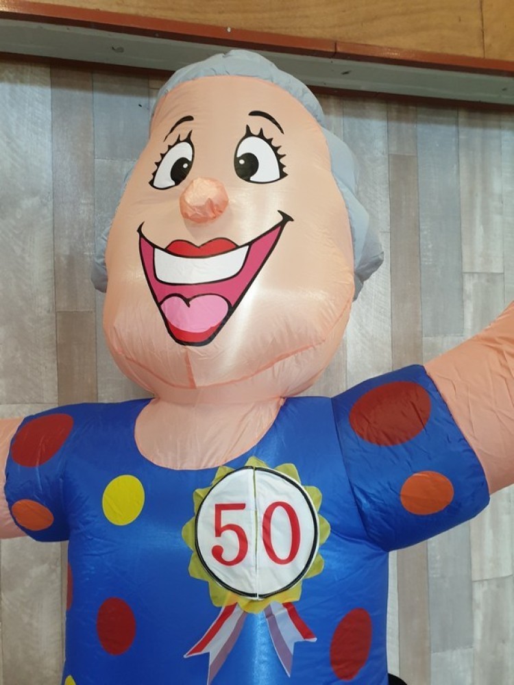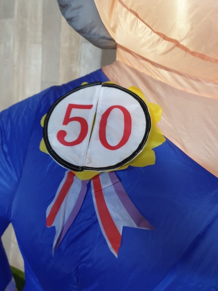 Dit bijzondere opblaasfiguur is geschikt voor alle leeftijden en kan daarom besteld worden met alle getallen van 0-99 (zeer eenvoudig te bevestigen met behulp van klittenband). Verder is dit opblaasfiguur voorzien van ingebouwde verlichting waardoor hij ook in de avond een opvallende verschijning is.