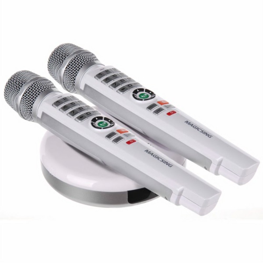 Zing mee met de laatste hits. Het E2 karaokesysteem van Magic Sing geeft je toegang tot een oneindige database aan nummers van over de hele wereld. Het E2 systeem is zeer eenvoudig in gebruik: Sluit het basisstation aan op je TV en voer je WiFi wachtwoord in. Via WiFi heb je direct toegang tot meer dan 12.000 Engelstalige nummers. De set wordt geleverd met twee draadloze microfoons dus ook duetten en battles behoren tot de mogelijkheden. Uiteraard kun je met het E2 systeem melodie, klankkleur, galm en tempo aanpassen en kun je de tekst en noten meelezen op je tv.