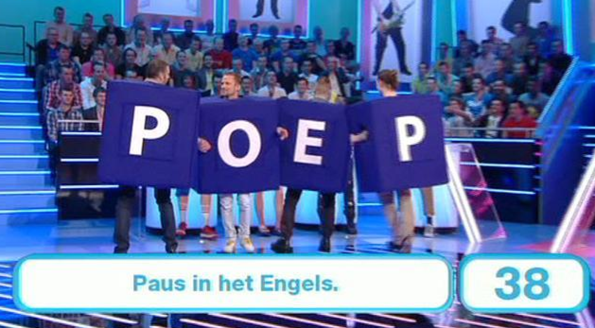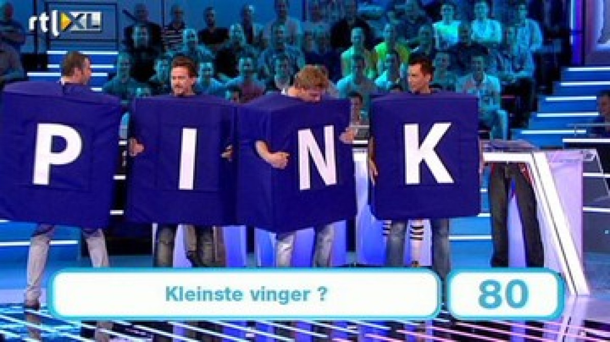 Op zowel de voor als de achterzijde van het pak is een letter bevestigd. De quizmaster stelt een vraag en het antwoord bestaat uit een woord van 4 letters die de teamgenoten door van plek te wisselen en zich om te draaien moeten vormen. Beantwoord zo veel mogelijk vragen binnen een bepaalde tijd.