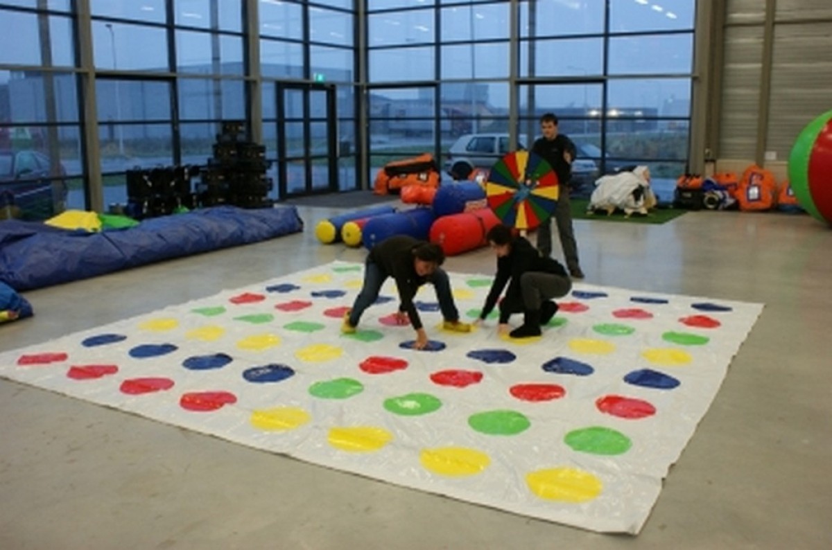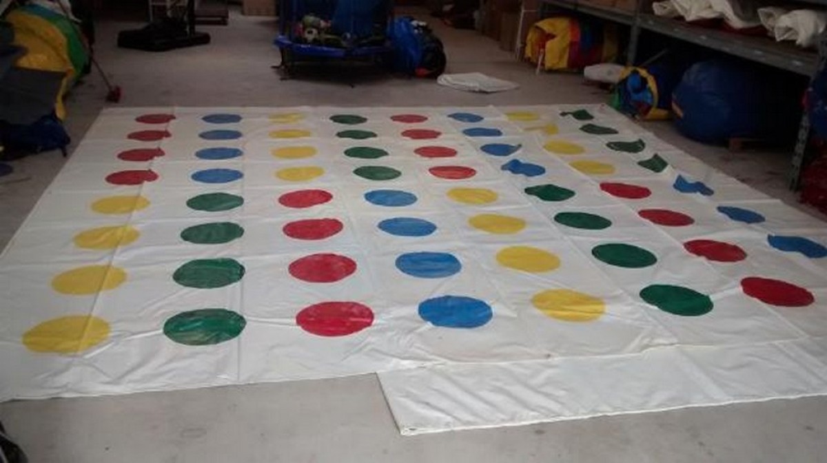 Bijna 4 keer zo groot als een "normaal" twister spel. Zeer leuk voor jong en oud voor personeelsuitje, kinderpartijtje of buurtfeest. Wring je in allerlei bochten, blijf zo lang mogelijk overeind staan en win!