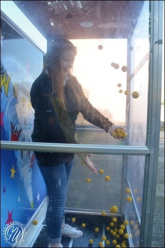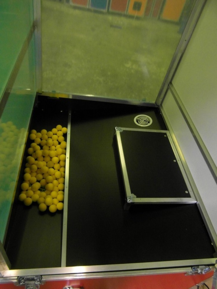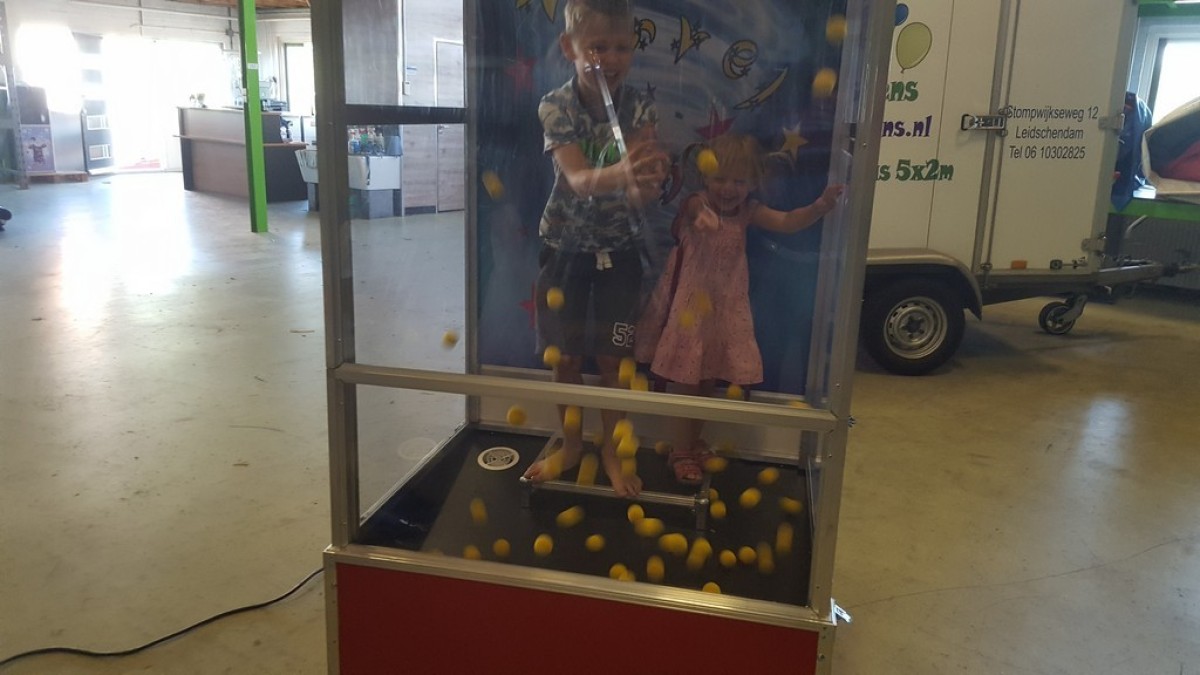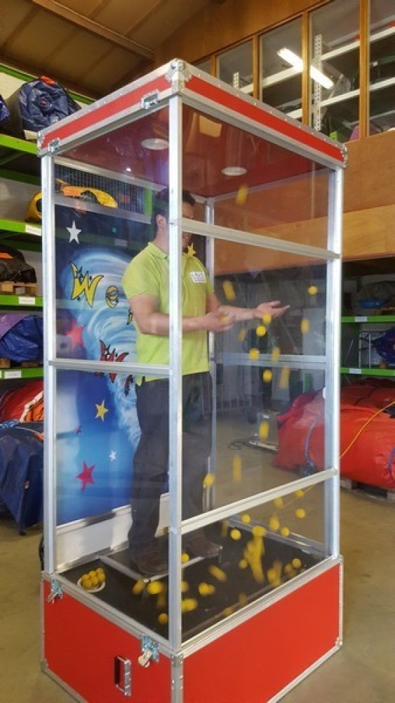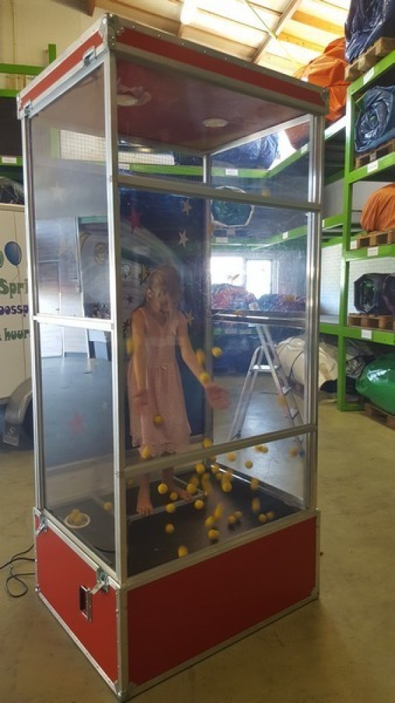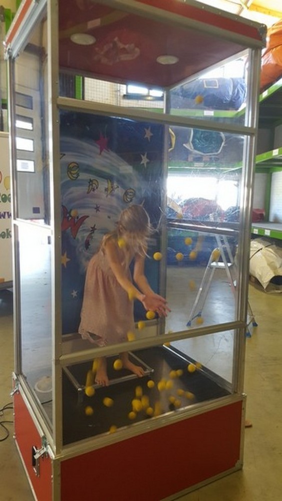 Kassa! Neem plaats op het plateau in de cabine en vang zo veel mogelijk balletjes die door de wervelwind omhoog worden geblazen. Het is nog niet zo makkelijk als het lijkt.