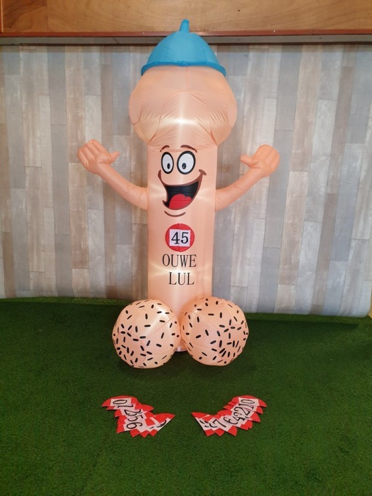 Dit bijzondere opblaasfiguur is geschikt voor alle leeftijden en kan daarom besteld worden met alle getallen van 0-99 (zeer eenvoudig te bevestigen met behulp van klittenband).