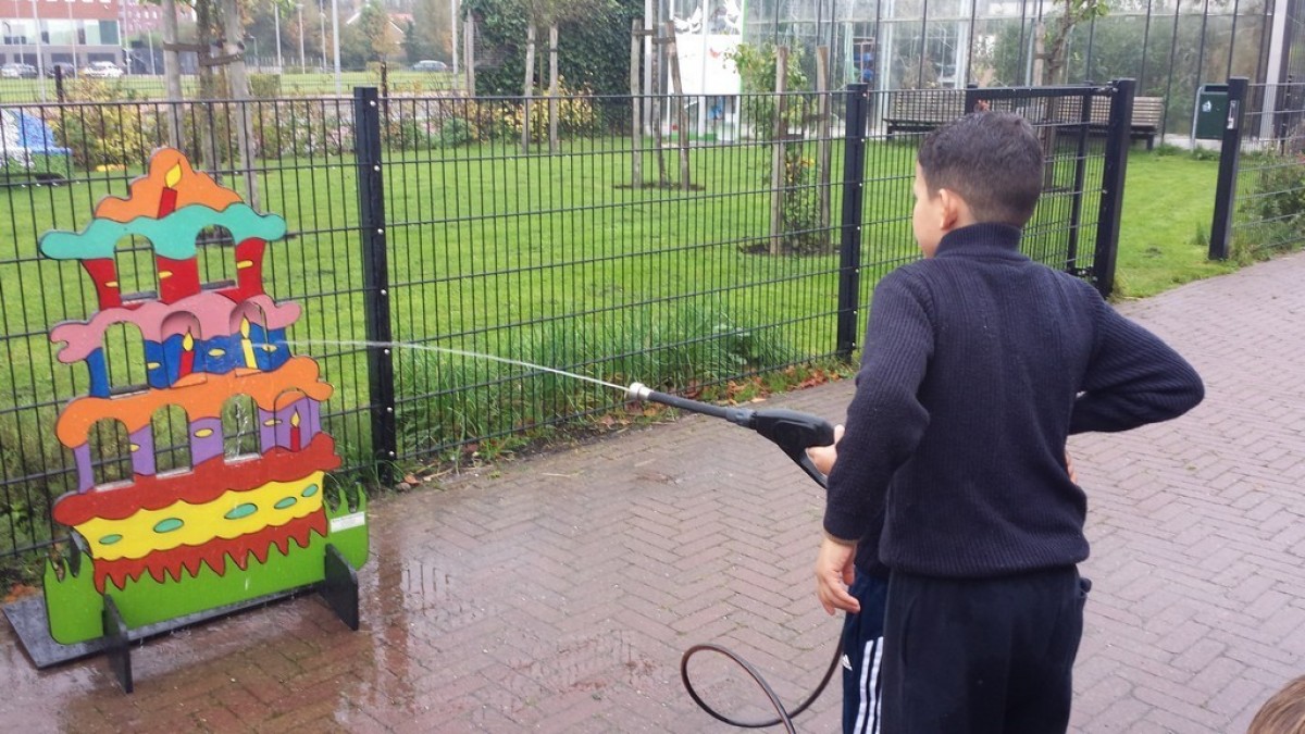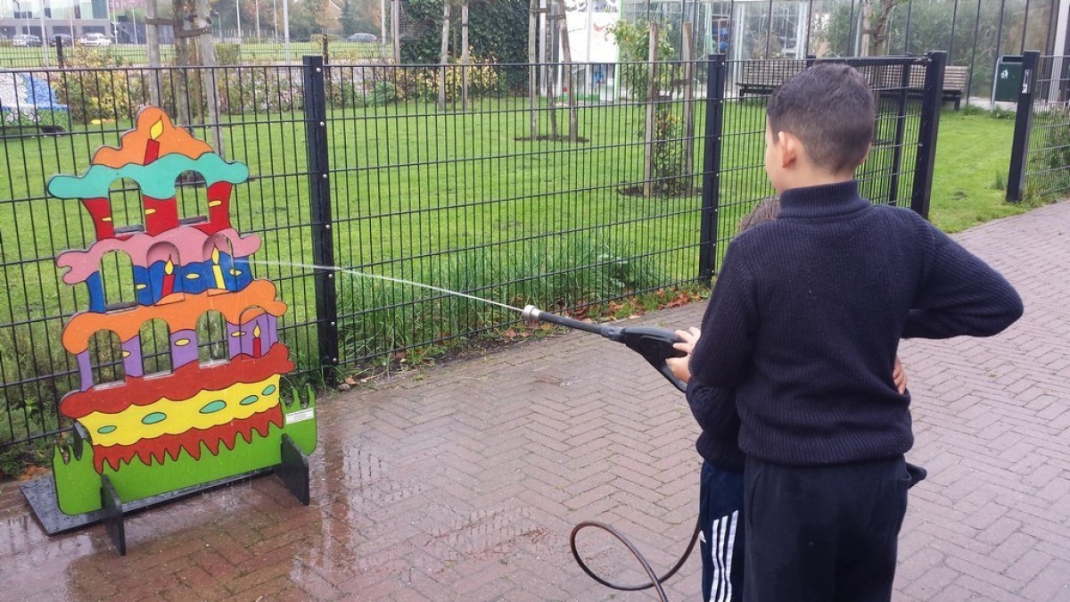 Gebruik de drukspuit om de kaarsjes omver te spuiten!