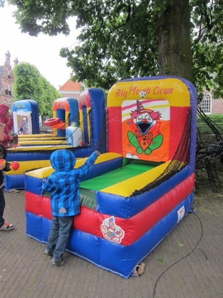 Werp binnen een minuut zoveel mogelijk ballen door de mond van onze vrolijk lachende clown.