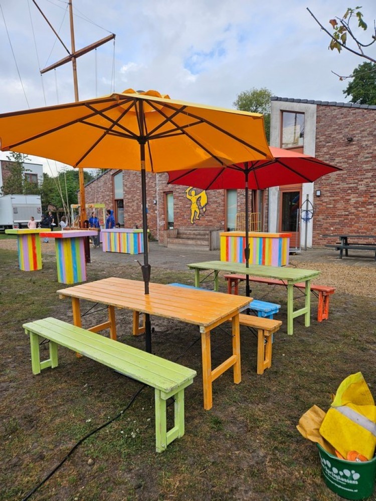 Gekleurde biertafelset beach incl parasolGekleurde biertafelset beach incl parasol