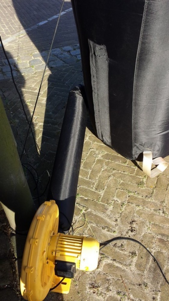 Beschikt u zelf over een goed werkend verlengsnoer (haspel)? Het is handig om die alvast klaar te hebben staan als u begint met opbouwen, het snoer van de blower is namelijk vrij kort (ongeveer 1m). Eventueel kunt u bij ons een haspel huren.