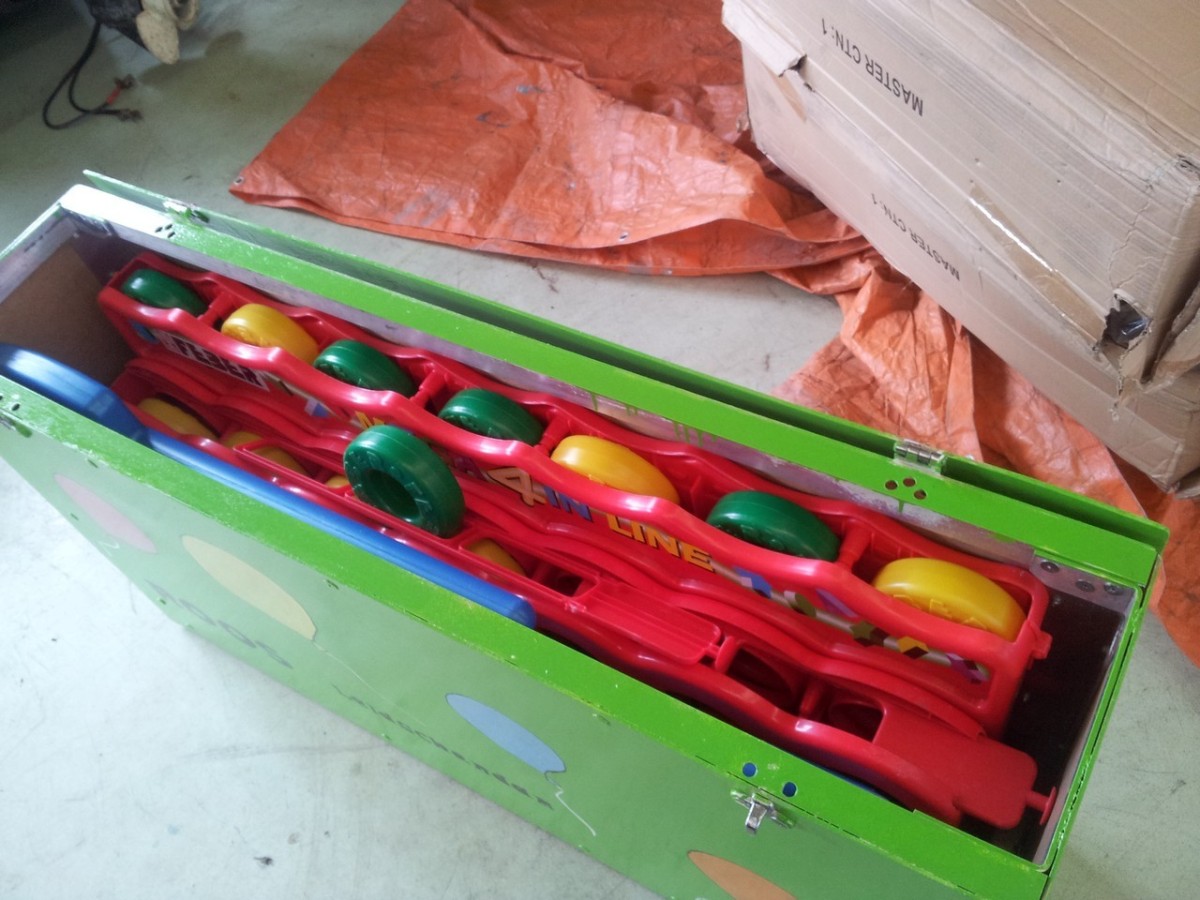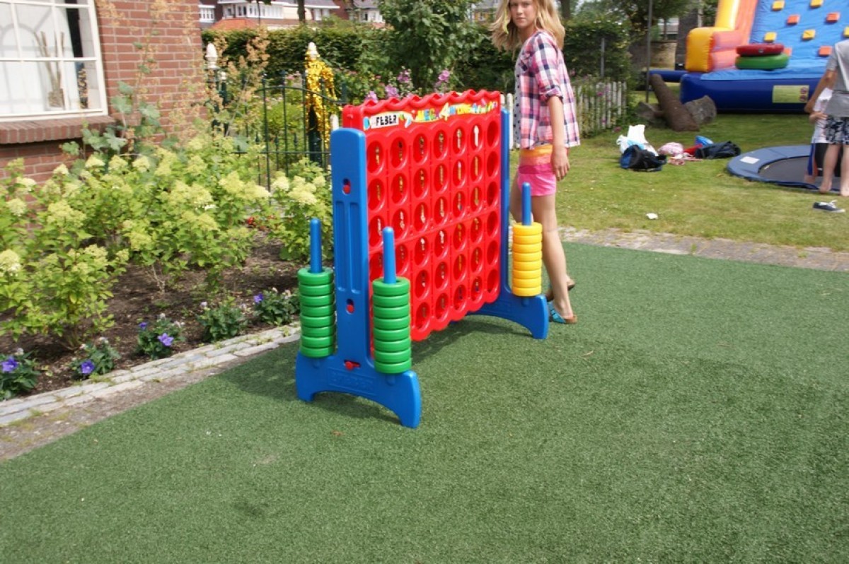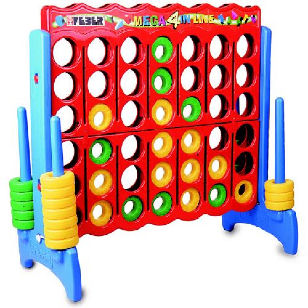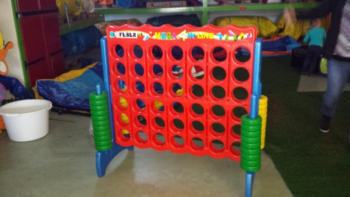 Megagrote 4 op een rij. Zeer leuk voor 2 of meer spelers. Plaats om beurten een schijf van je eigen kleur in het spelbord. Degene die als eerste 4 schijven op een rij vormt, is de winnaar.