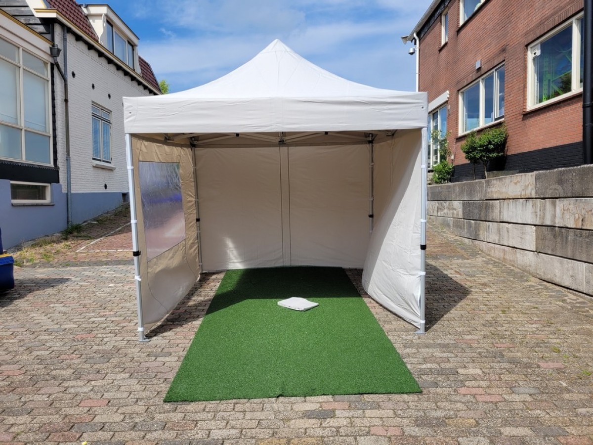 Het op- en afbouwen van de partytent is zeer makkelijk. Het betreft een easy-up systeem en de tent staat in 2 minuten overeind.