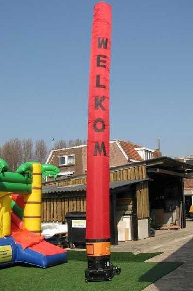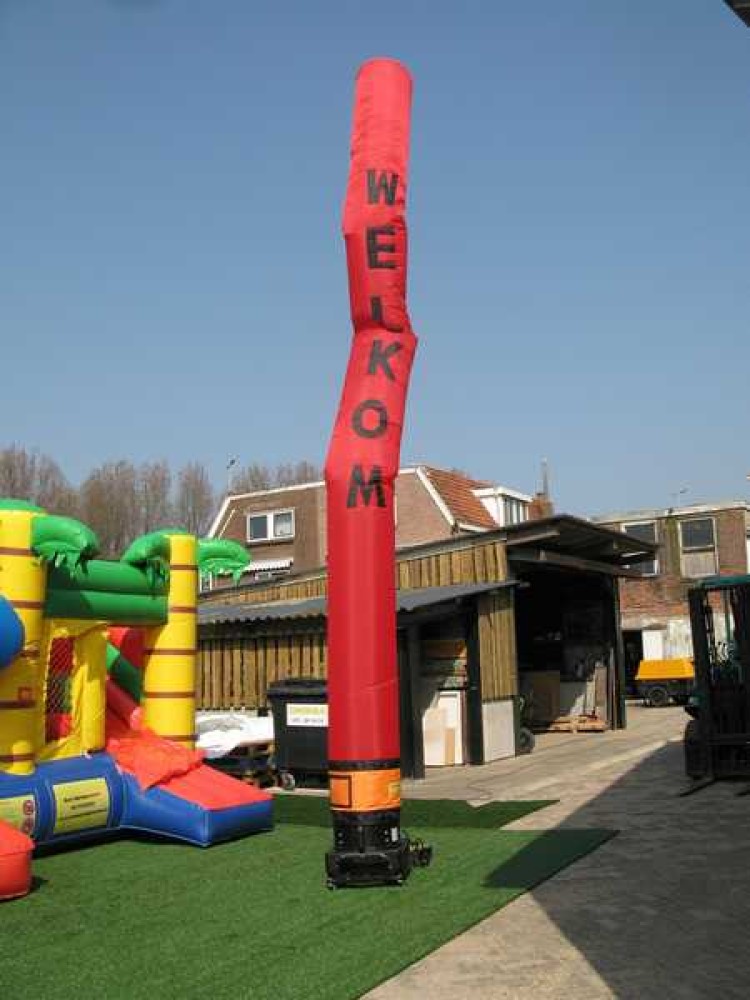 De Skytube rood welkom wordt geleverd inclusief de benodigde blower. Sluit deze ten alle tijden aan op een geaard stopcontact of verlengkabel.