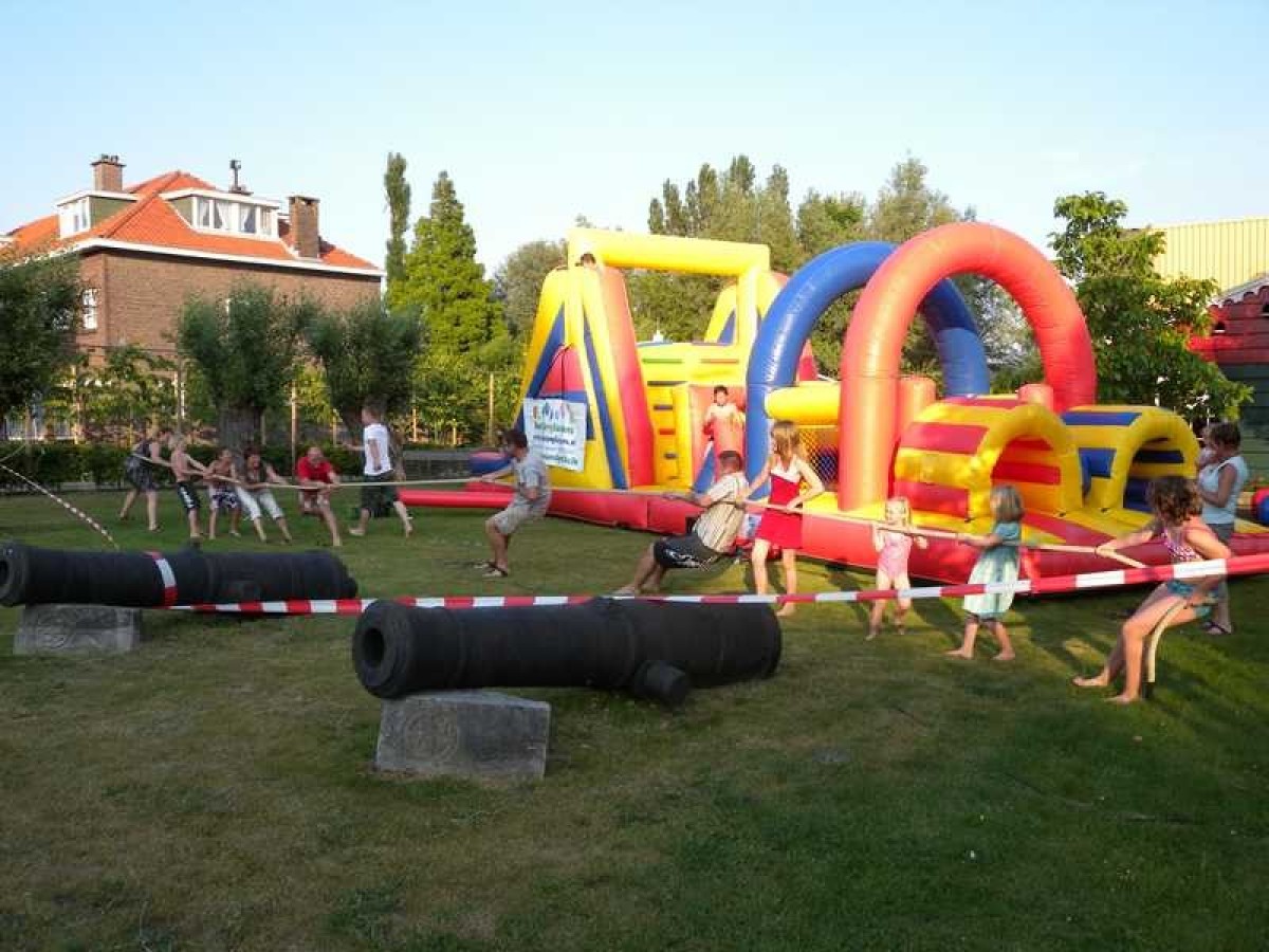 Wie trekt er aan het langste eind! Een touwtrektouw van wedstrijdformaat.