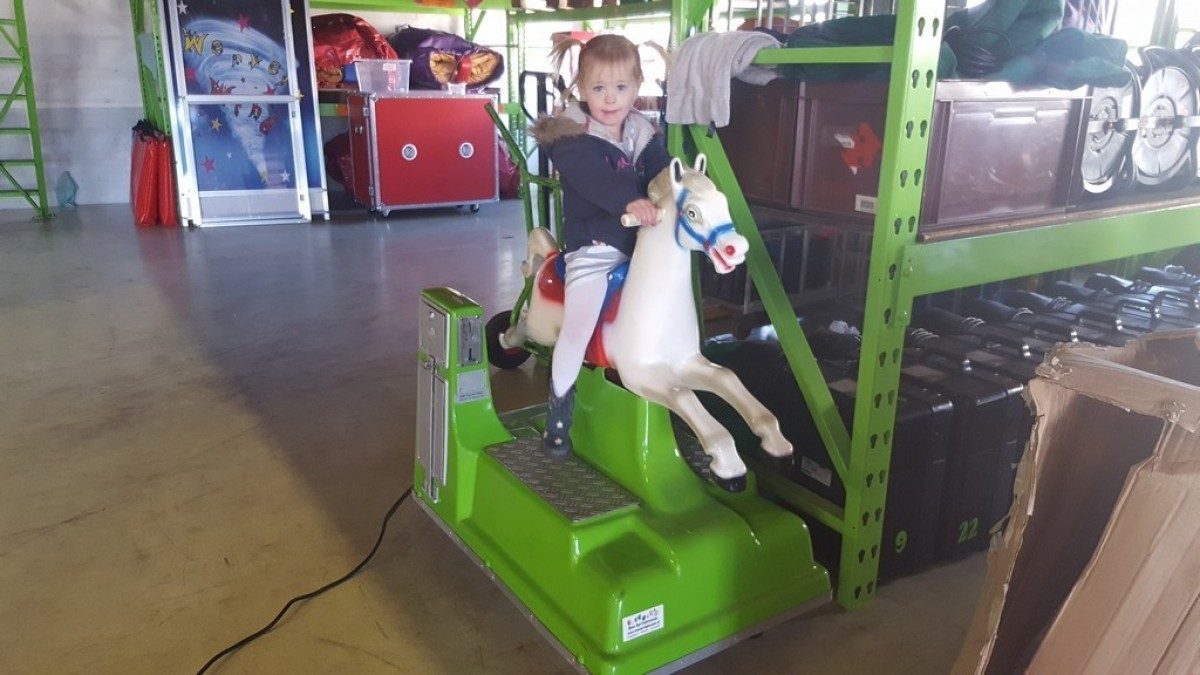 Wie kent hem niet, de kiddy ride is niet meer weg te denken uit de winkelcentra en kinderen zijn nog steeds helemaal weg van deze attractie. Gooi een muntje in de automaat en de kinderen maken een ritje op het paard. Het leuke aan deze attractie is dat je het muntje er zo vaak in mag gooien als je wilt want je kunt de opbrengst er zelf weer uithalen.