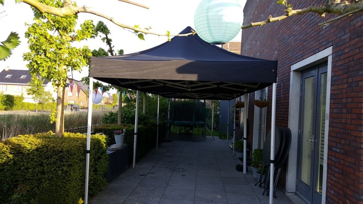 Het op- en afbouwen van de partytent is zeer makkelijk. Het betreft een easy-up systeem en de tent staat in 2 minuten overeind.