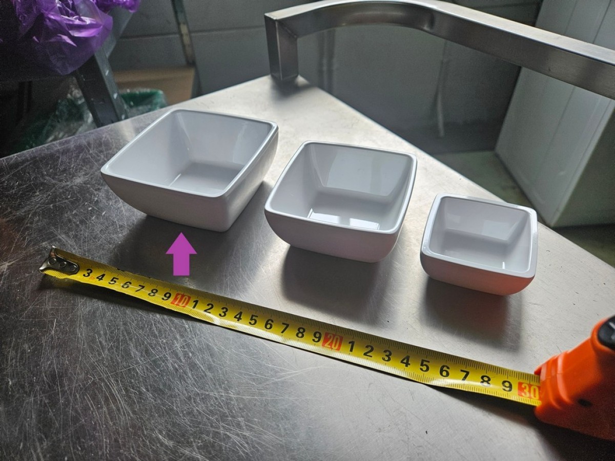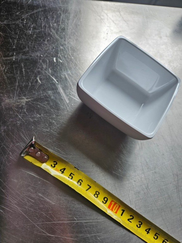 Schaal - Melanie - Vierkant 10x10 wit past gemakkelijk in vrijwel elke auto waarvan de achterbanken naar voren geklapt kunnen worden.