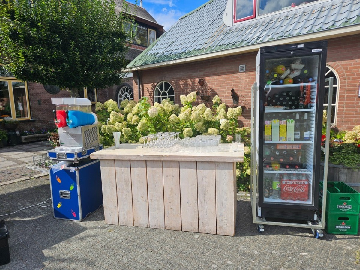 Het klapbuffet bestaat uit een bovenblad en een onderstel. Het onderstel is inklapbaar, daardoor is de tafel makkelijk mee te nemen.