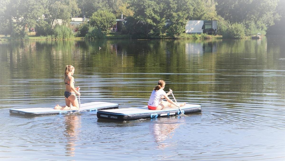 De mat is eenvoudig op te blazen en is geschikt voor zowel binnen als buitengebruik. Met de bijgeleverde elektrische pomp heb je de baan binnen en paar minuten opgeblazen en binnen 2 minuten weer leeggepompt.