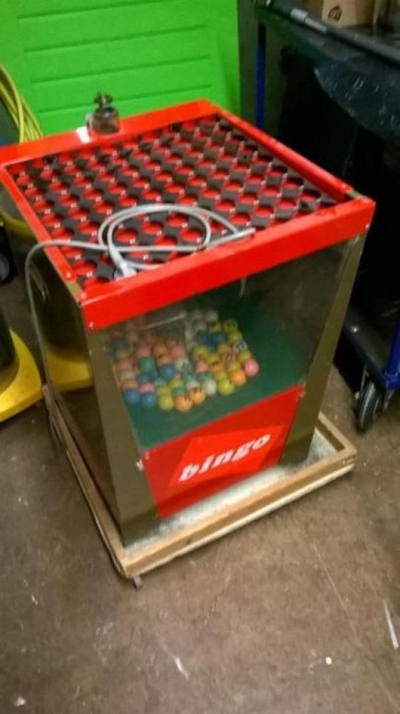 De Bingo blower machine past gemakkelijk in elke auto waarvan de achterbanken naar voren geklapt kunnen worden.