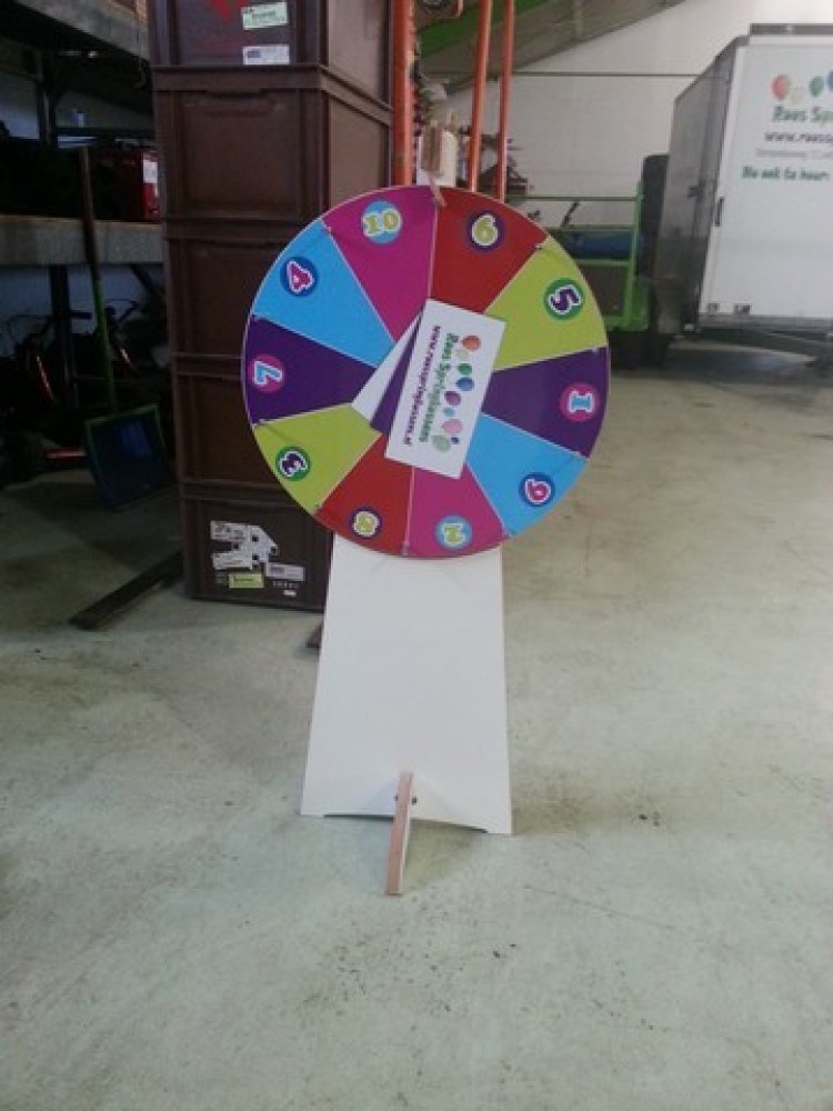 Dit speciale rad is slechts 1 meter hoog en daarom ideaal voor kinderen die zelf een slinger willen geven om een prijs te winnen, maar ook voor op de balie van uw winkel. Het Rad van avontuur (ook wel rad van fortuin genoemd) is multifunctioneel inzetbaar om mensen iets te laten winnen. Een echte topattractie op feesten van verenigingen, stichtingen, winkels en scholen of natuurlijk op de braderie, evenementen, fancy fair, rommelmarkt en overal waar iets te winnen valt.