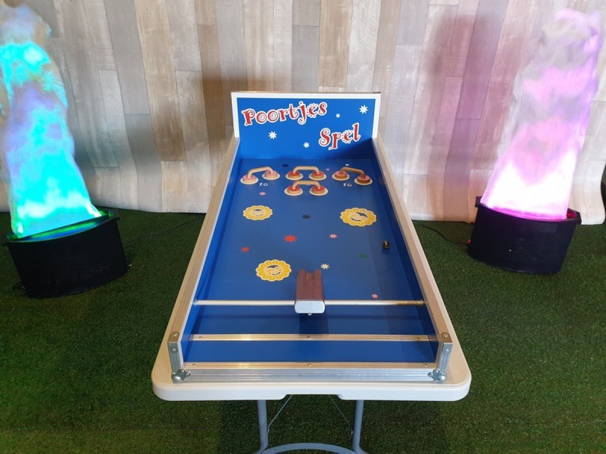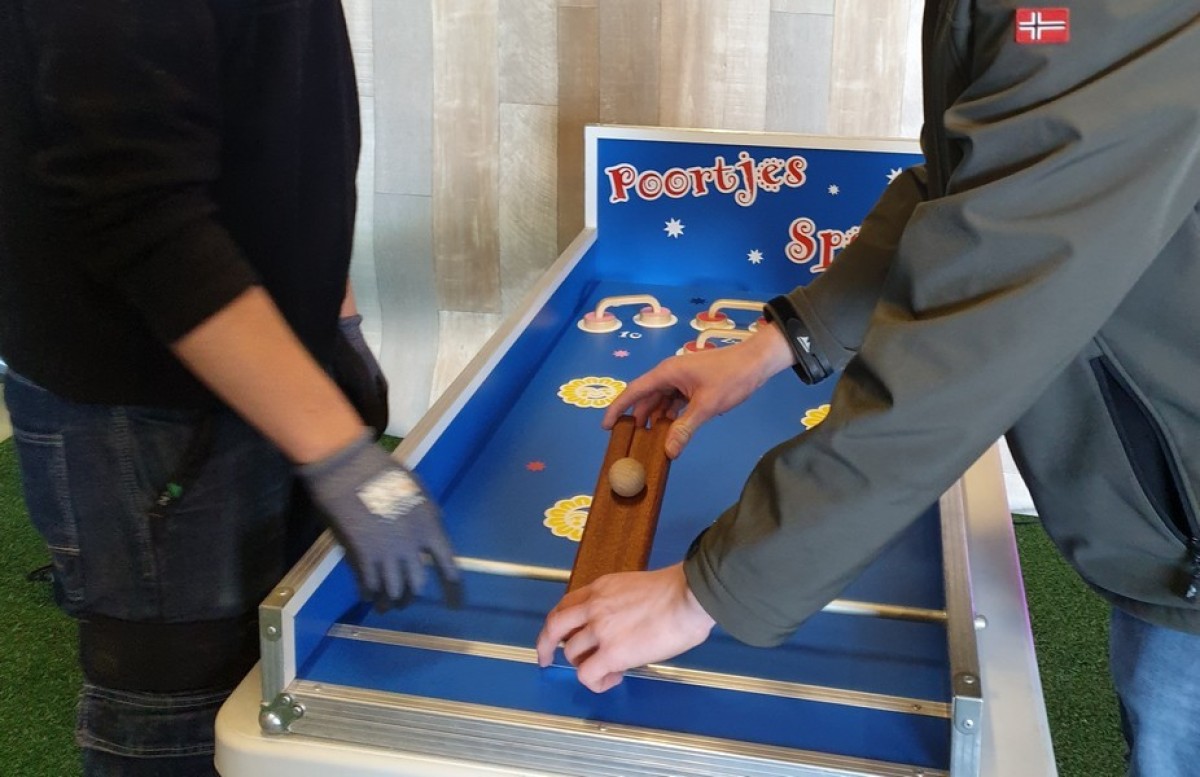 Dit leuke oud Hollandse spel in een modern jasje. Rol de kogel door de poortjes. Klinkt makkelijk maar je moet de kogel wel eerst van de houten slede afrollen.