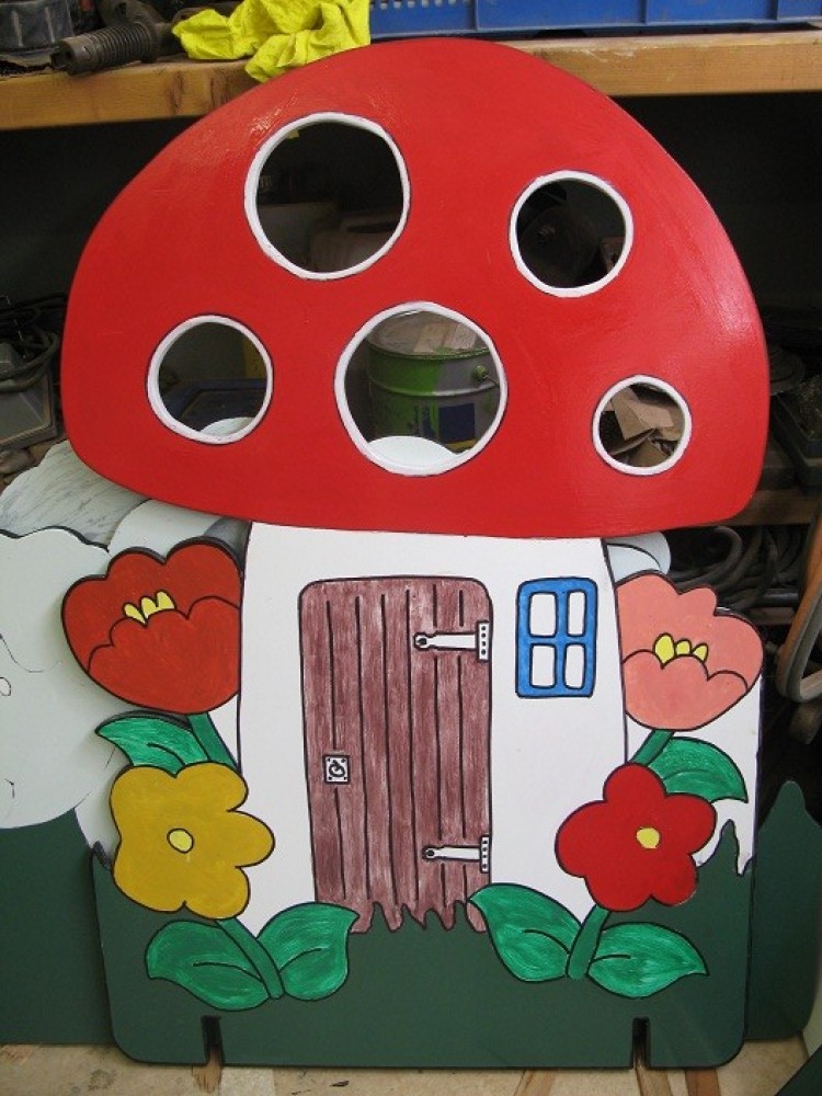Gooi de ballen door de stippen van de paddenstoel! Zeer goed te gebruiken voor zeskamp of kinderpartijtjes!