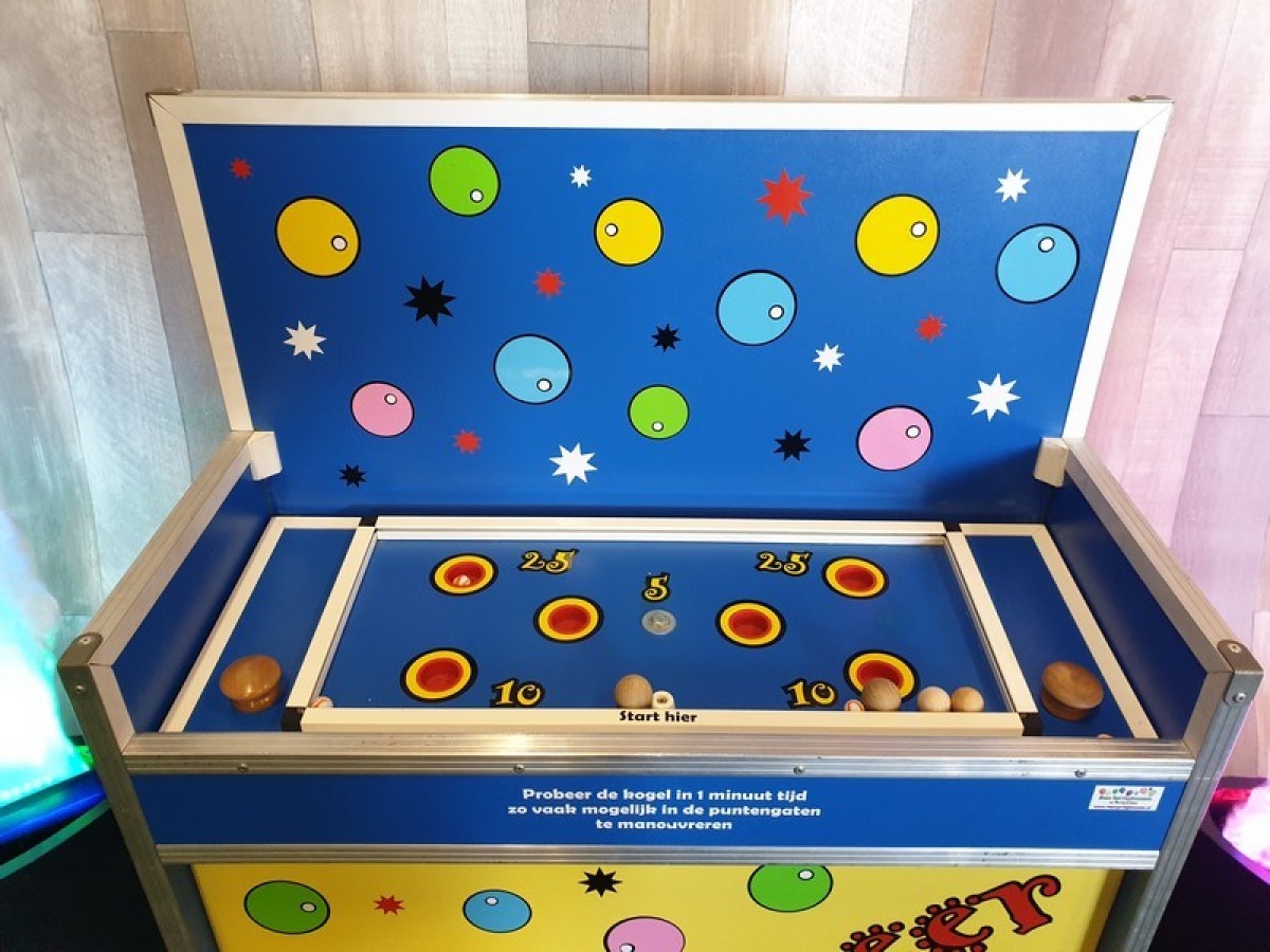 De ultieme behendigheidstest! Beweeg het balletje langs de verschillende gaten en manoeuvreer je balletje in het gaatje met de hoogste punten. Hoeveel punten scoor jij in 1 minuut?