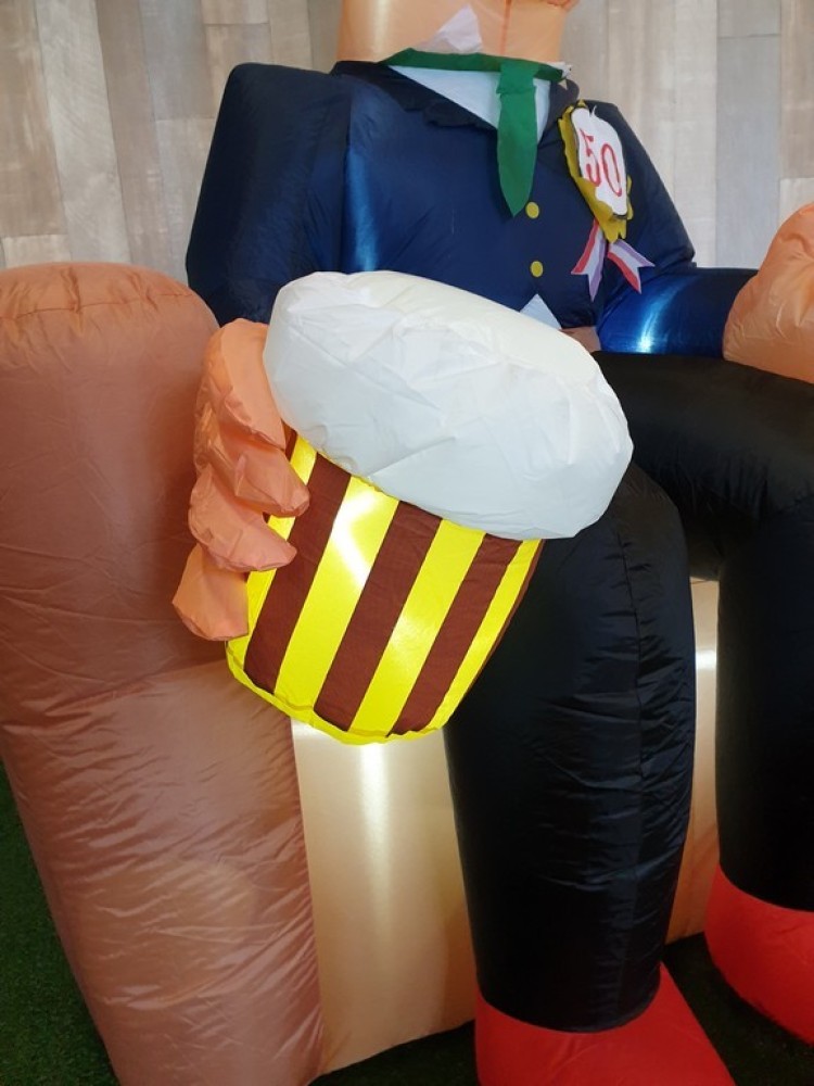 Met deze eyecatcher is er geen ontkomen aan: het zal niemand ontgaan dat het groot feest is. Verder is dit opblaasfiguur voorzien van ingebouwde verlichting waardoor hij ook in de avond een opvallende verschijning is.