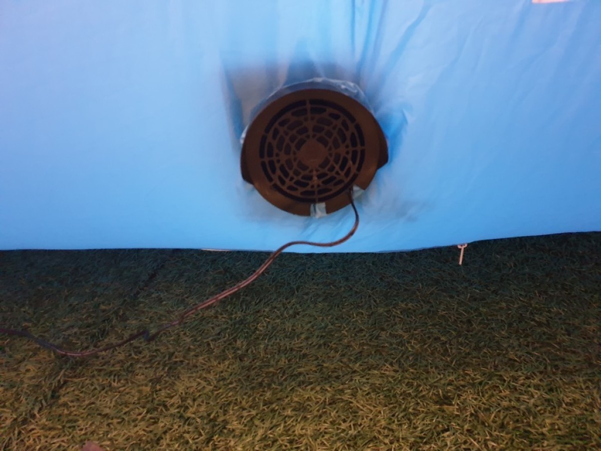Beschikt u zelf over een goed werkend verlengsnoer (haspel)? Het is handig om die alvast klaar te hebben staan als u begint met opbouwen, het snoer van de blower is namelijk vrij kort (ongeveer 1m). Eventueel kunt u bij ons een haspel huren.