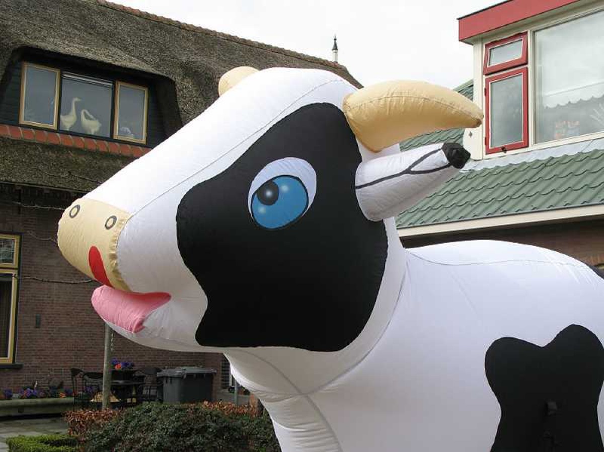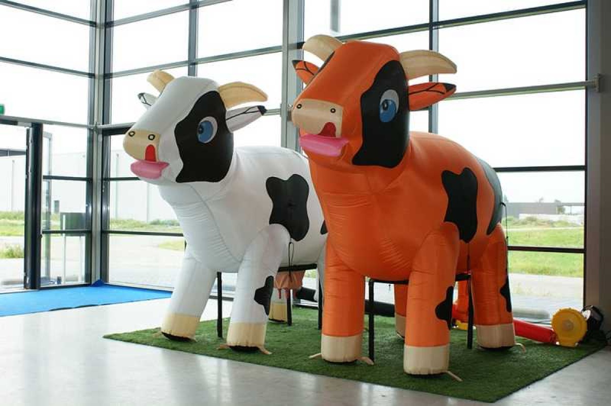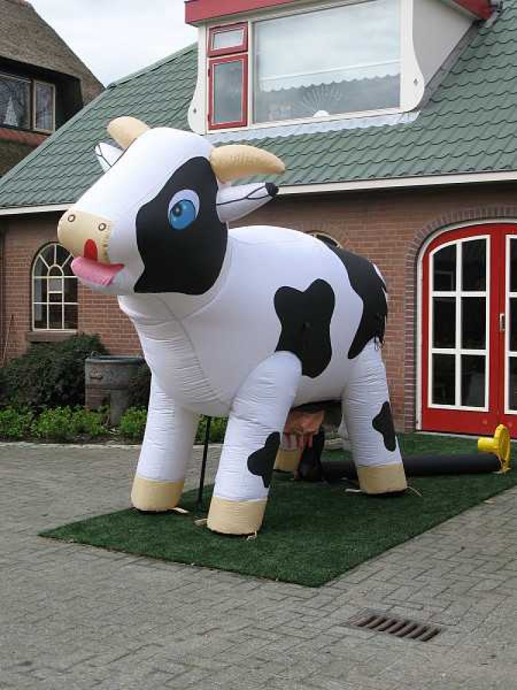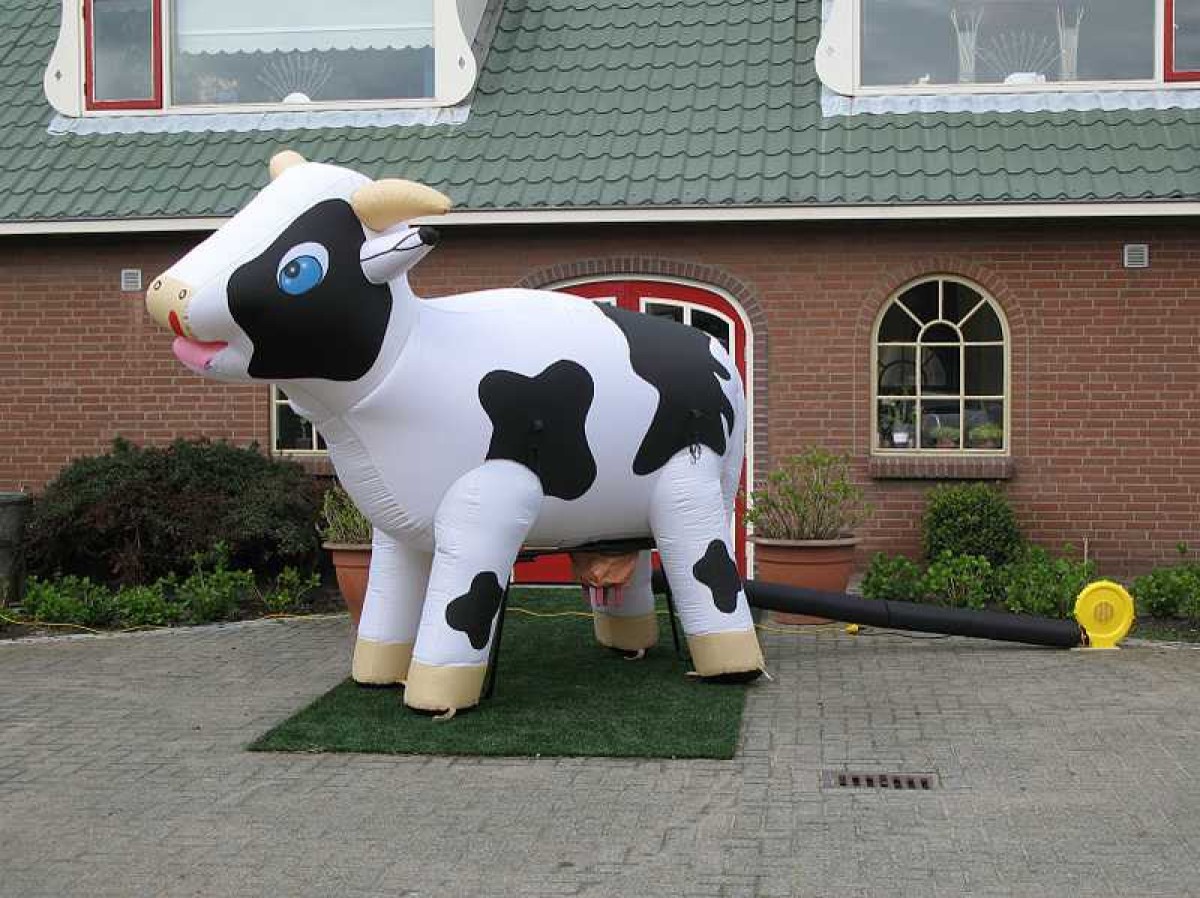 Deze levensgrote opblaaskoe kan gebruikt worden als leuke eyecatcher voor bijvoorbeeld een opening van een bedrijf of open dag.