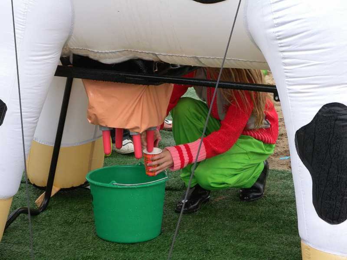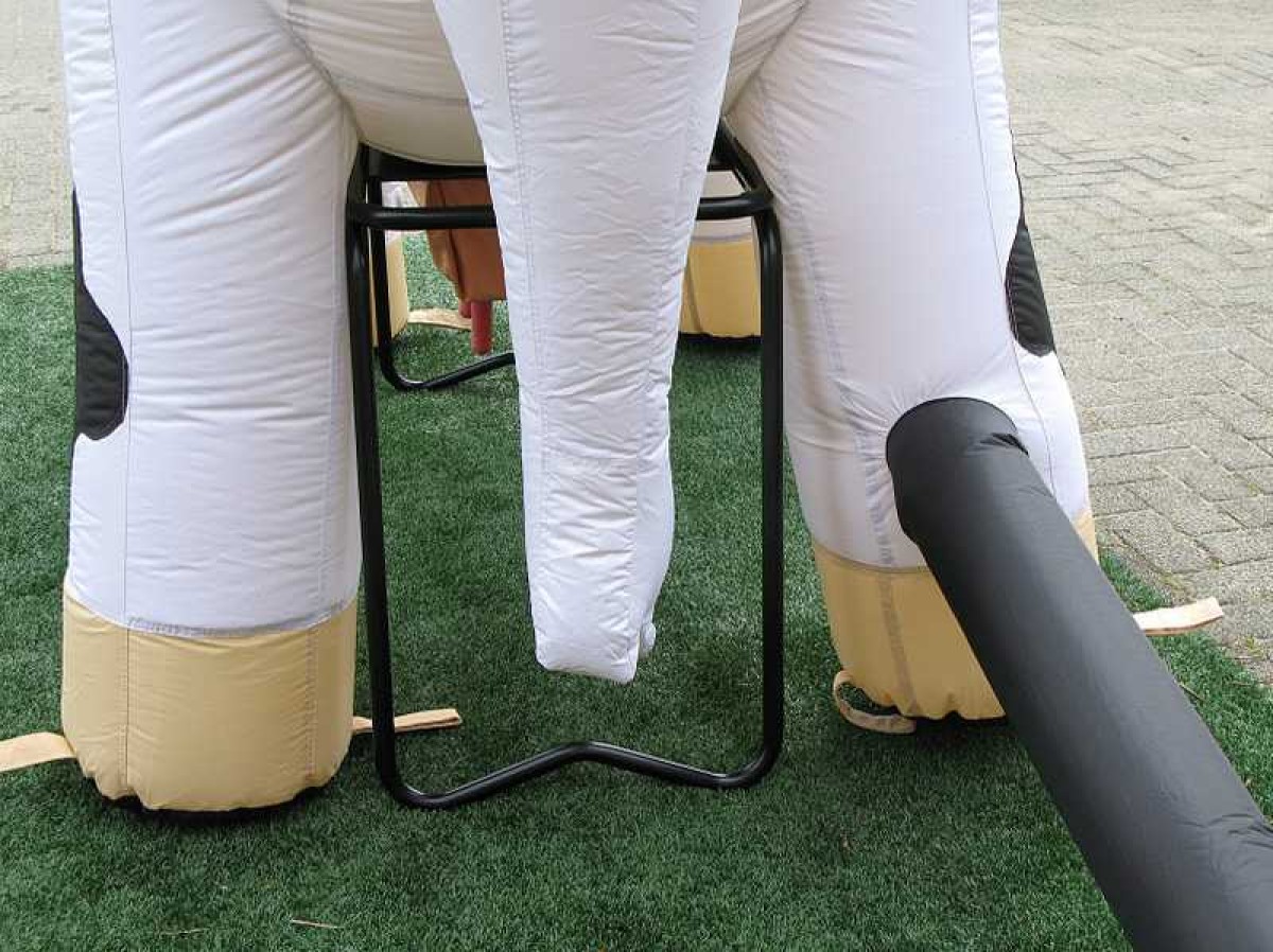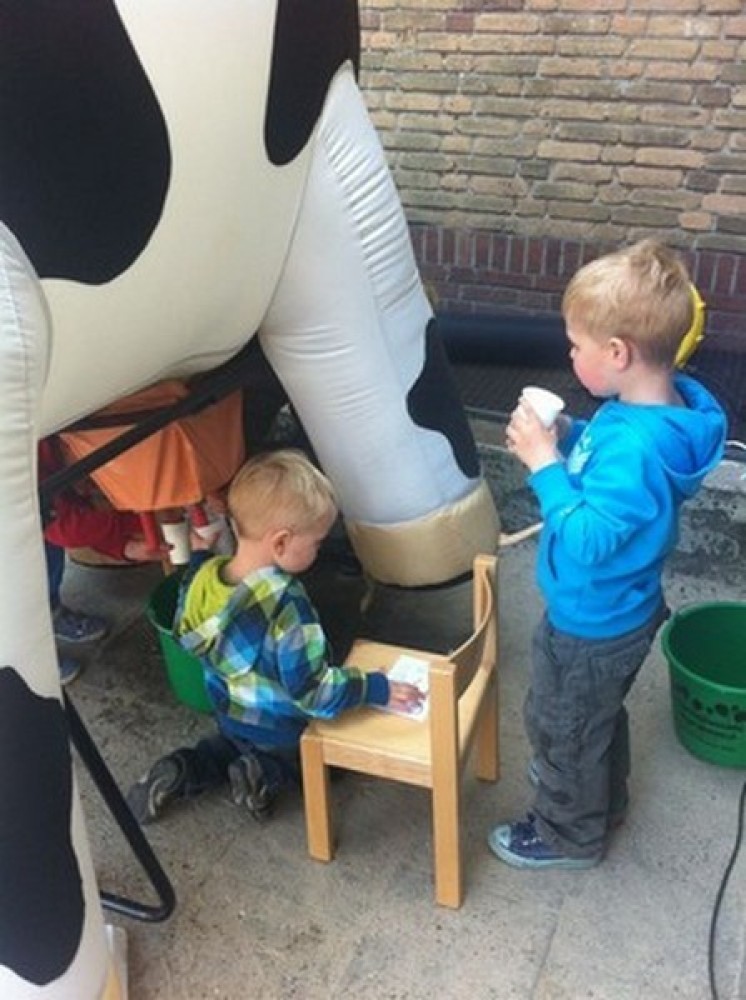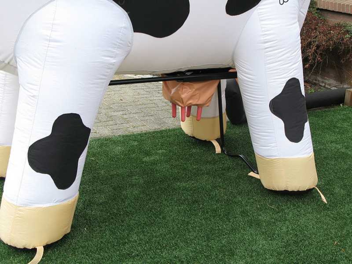 Deze levensgrote opblaaskoe kan gebruikt worden als leuke eyecatcher voor bijvoorbeeld een opening van een bedrijf of open dag.