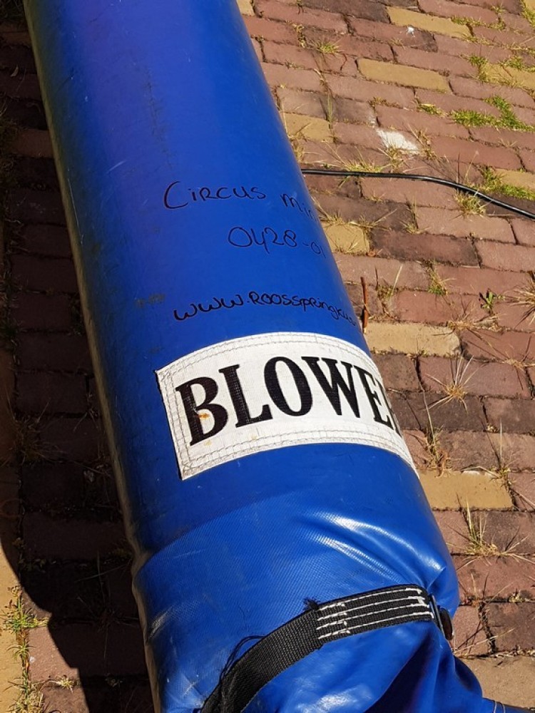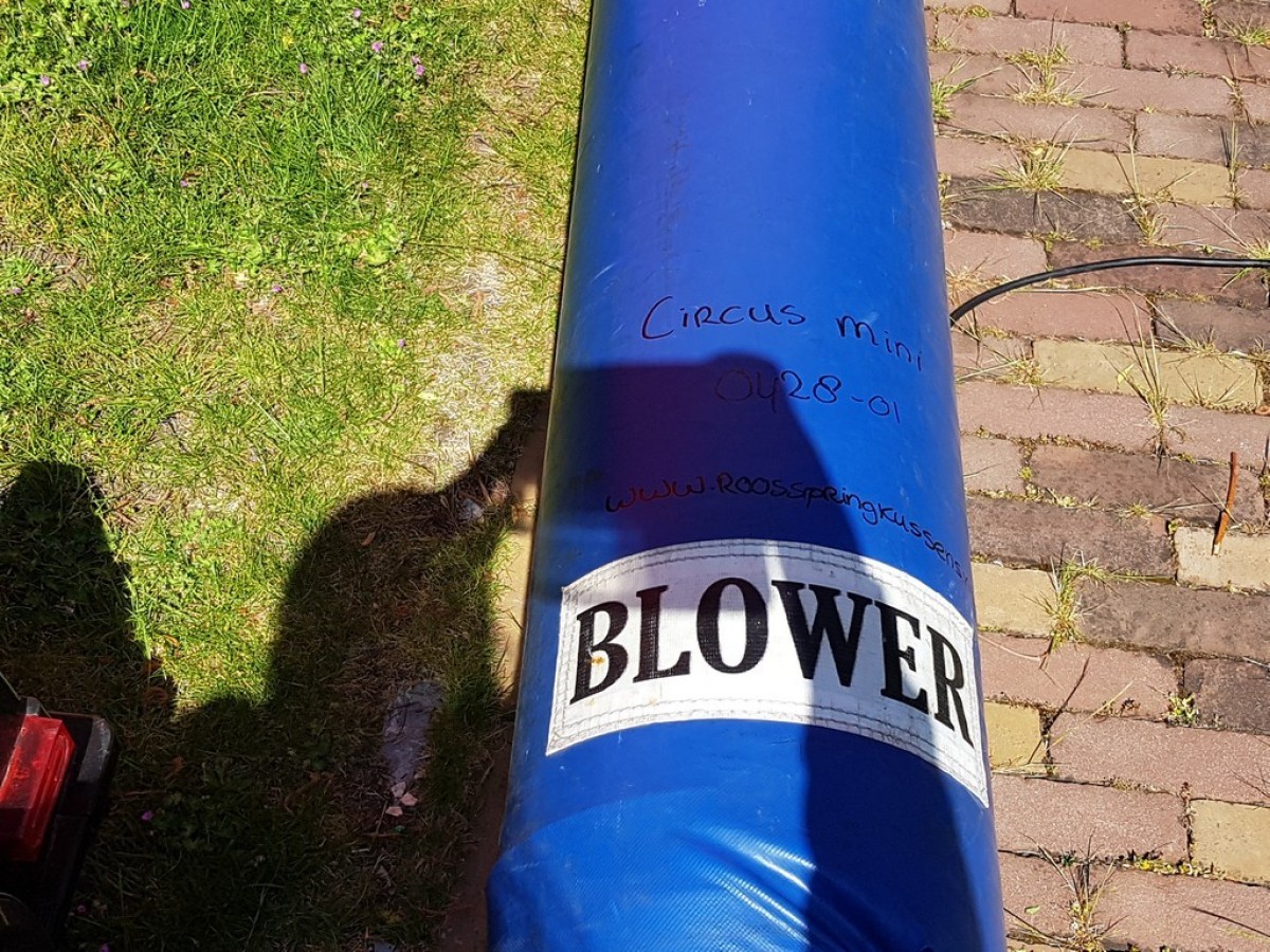 De Circus mini wordt geleverd inclusief de benodigde blower. Sluit deze ten alle tijden aan op een geaard stopcontact of verlengkabel. De blower heeft een vermogen van 1100Watt en is waterdicht.