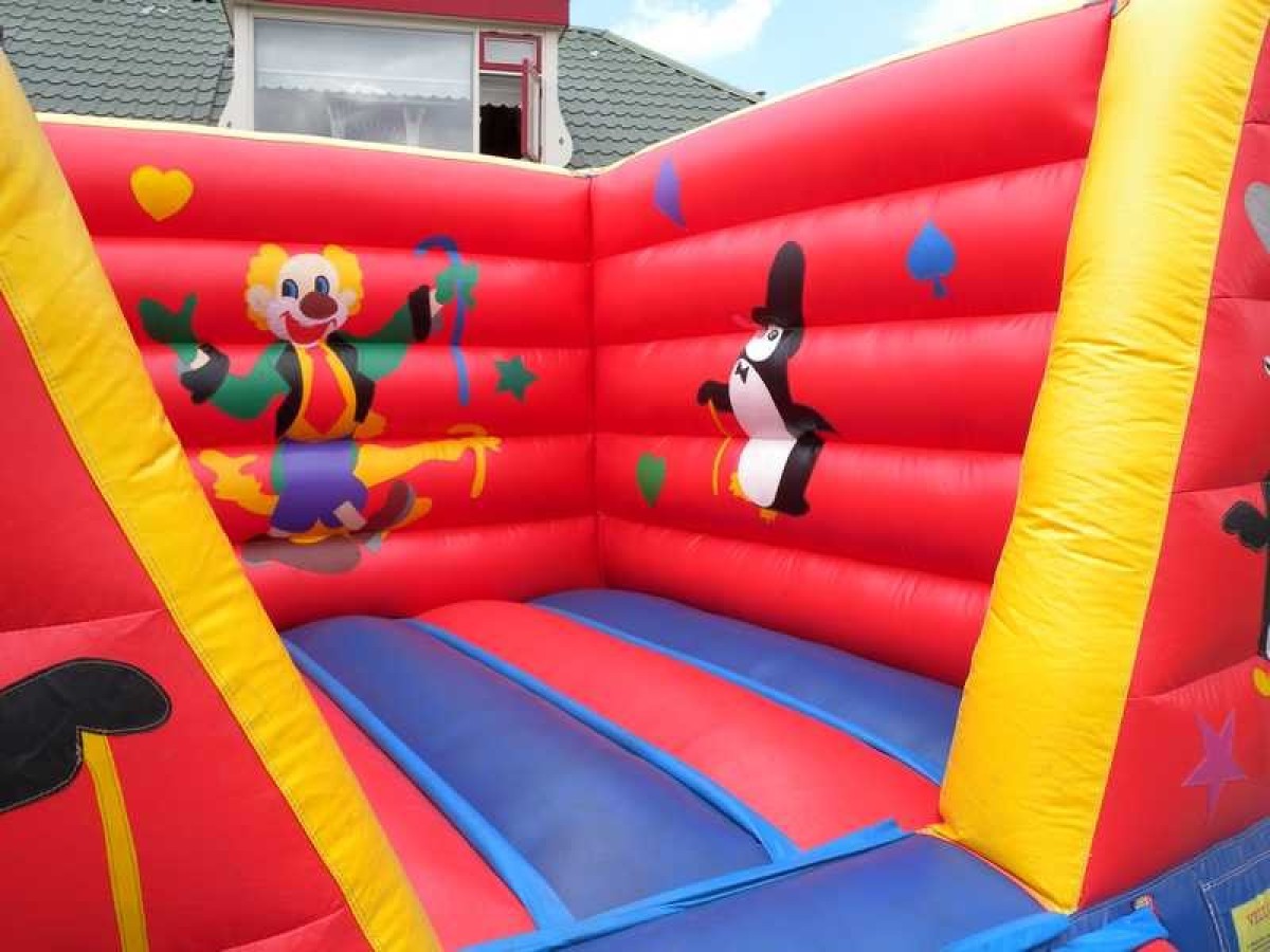 Leuk springkussentje met circusfiguren. Het springkussen is niet overdekt en heeft 1 ingang aan de voorzijde. Zeer overzichtelijk en daarom voor bijvoorbeeld kinderdagverblijven een echte aanrader.
