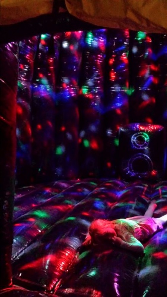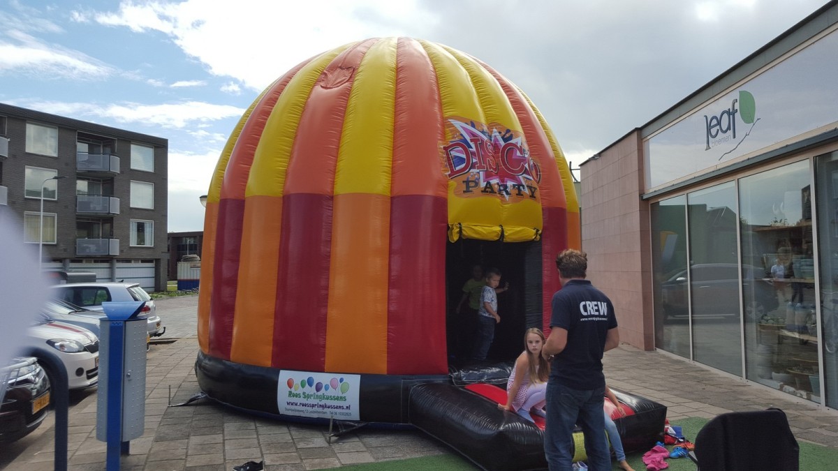 Een normaal springkussen maar dan voorzien van discoverlichting en muziek volledig geïntegreerd in het kussen waardoor er een ware disco ontstaat tijdens het springen. De allernieuwste sensatie op het gebied van attractieverhuur en een enorme hit want zo hebben de kinderen volledig hun eigen feestje.