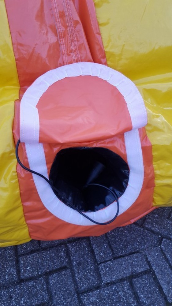 Tijdens het gebruik van het springkussen of de attractie dient de blower constant aan te blijven staan.