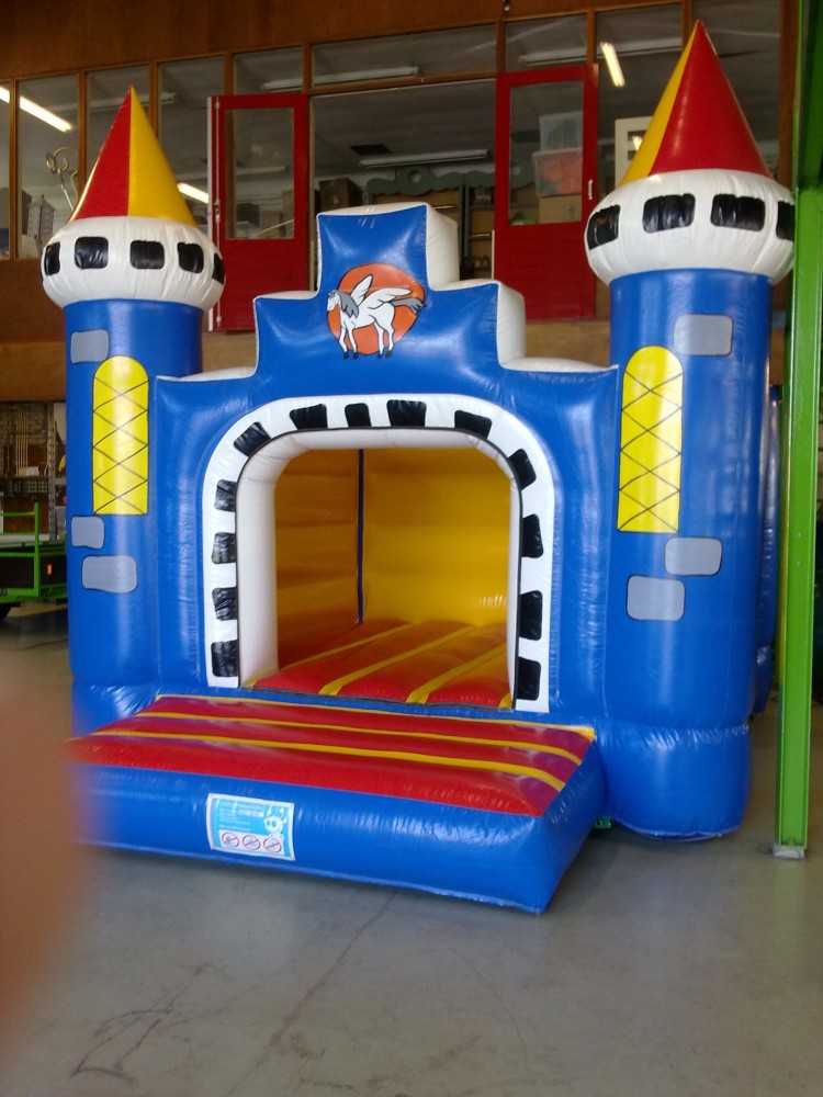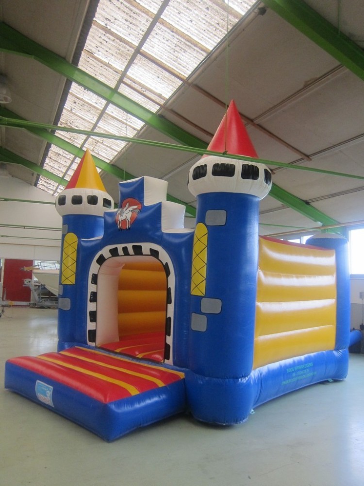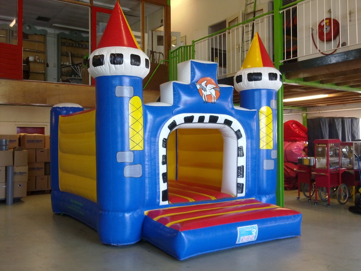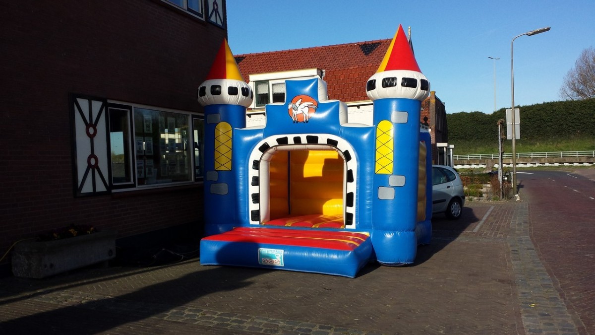 Kasteel (blauw) wordt geleverd inclusief de benodigde blower. Sluit deze ten alle tijden aan op een geaard stopcontact of verlengkabel. De blower heeft een vermogen van 1100Watt en is waterdicht.