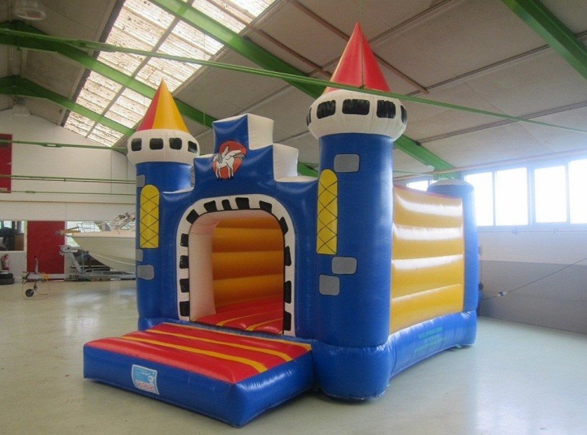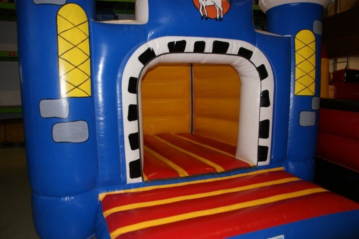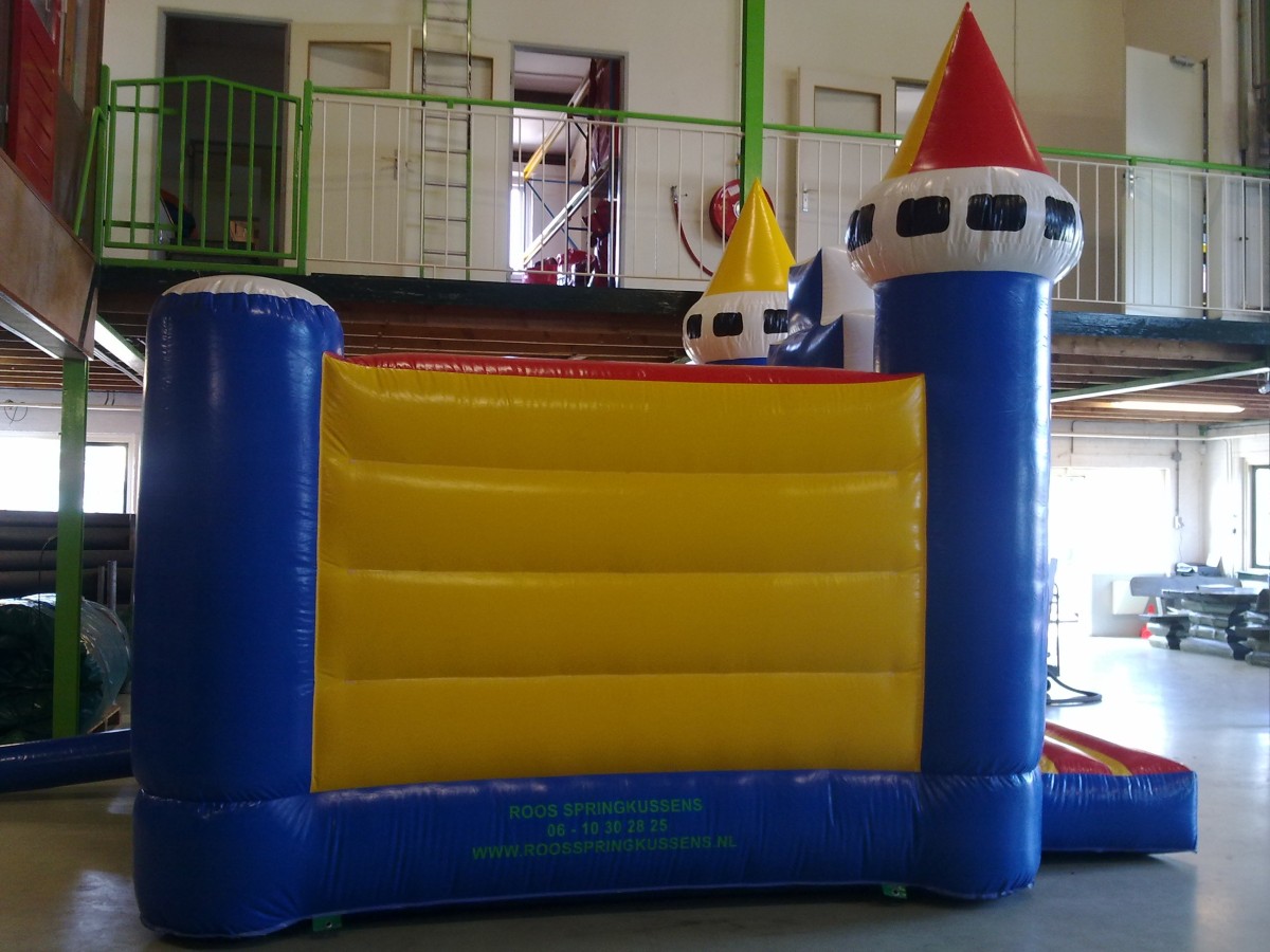 Het springkussen is niet overdekt en de ingang in de vorm van een echte kasteelpoort bevindt zich aan de voorzijde.
