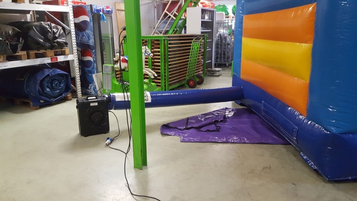 Beschikt u zelf over een goed werkend verlengsnoer (haspel)? Het is handig om die alvast klaar te hebben staan als u begint met opbouwen, het snoer van de blower is namelijk vrij kort (ongeveer 1m). Eventueel kunt u bij ons een haspel huren.