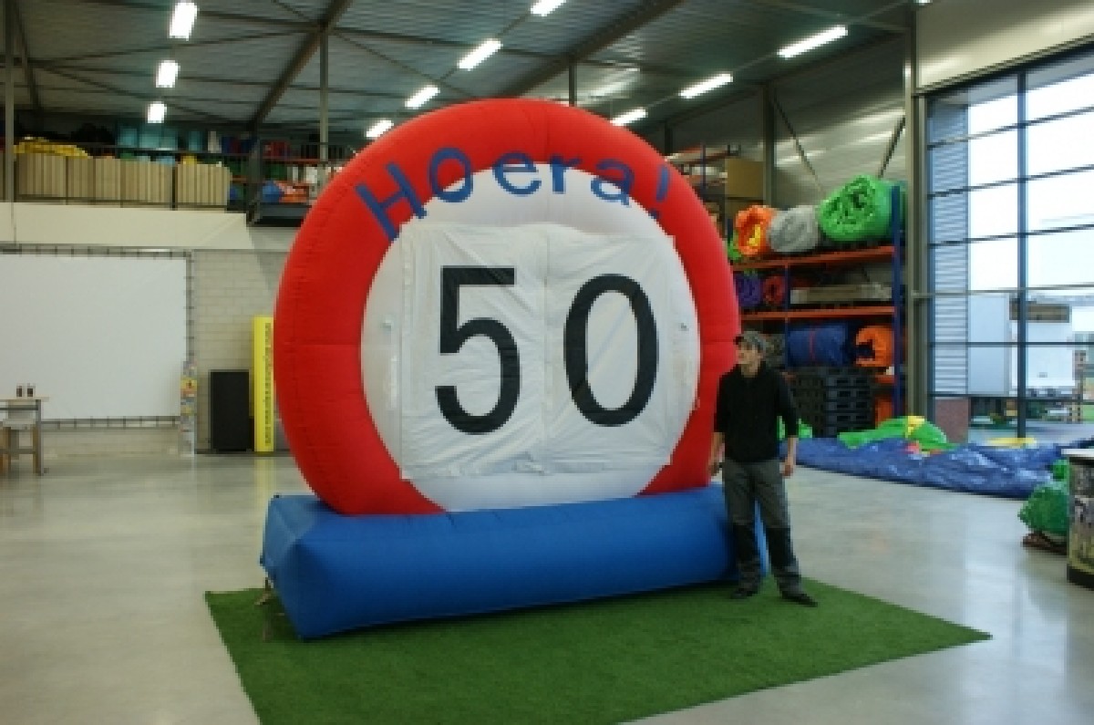 Uiteraard ontvangt u een duidelijke handleiding voor de op- en afbouw van onze Verkeersbord opblaasbaar.