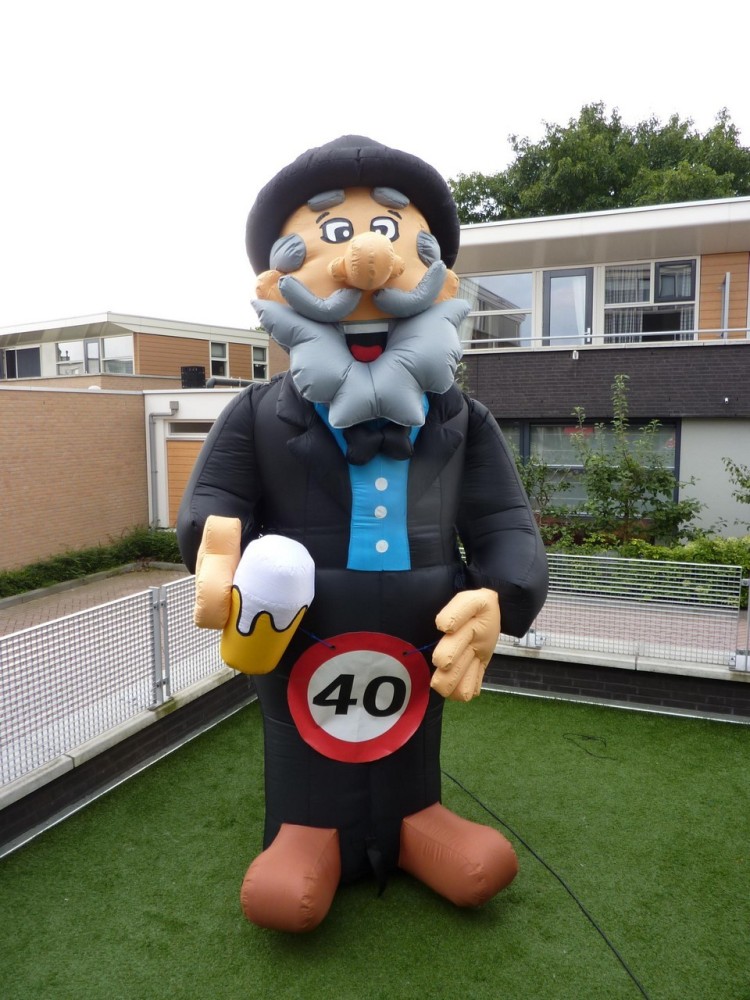 Dit levensgrote opblaas exemplaar is weer eens wat anders dan zelf een Abraham in elkaar knutselen.