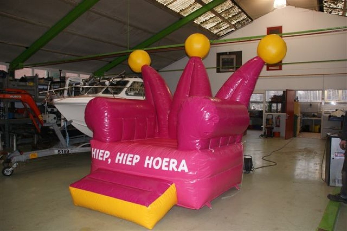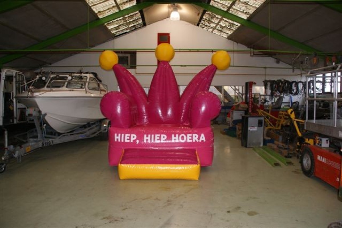 De Feestsoel wordt geleverd inclusief de benodigde blower. Sluit deze ten alle tijden aan op een geaard stopcontact of verlengkabel.