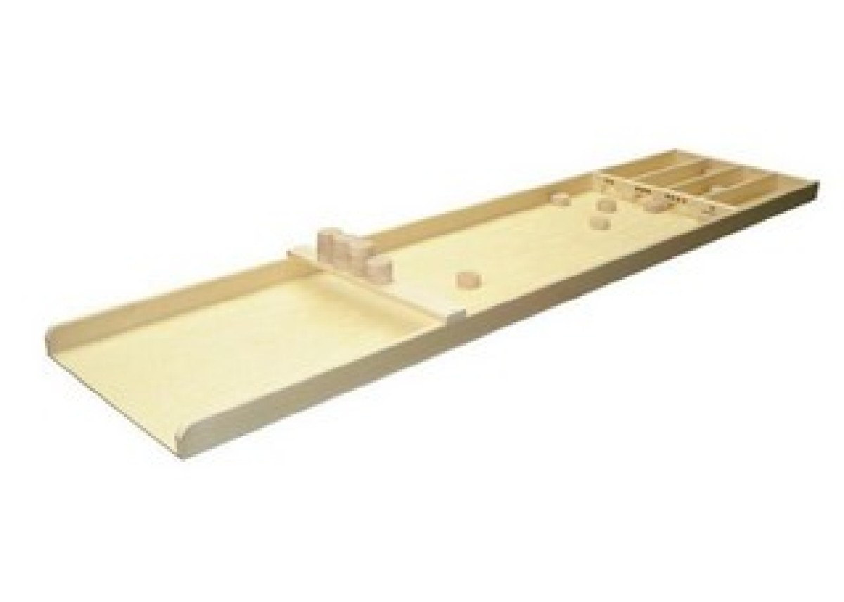 Een sjoelbak in miniformaat. Deze sjoelbak is klein van stuk, en daarom ook uitermate geschikt voor de allerkleinste,