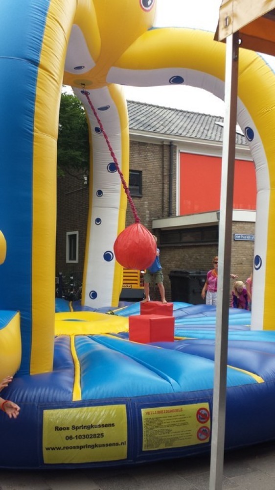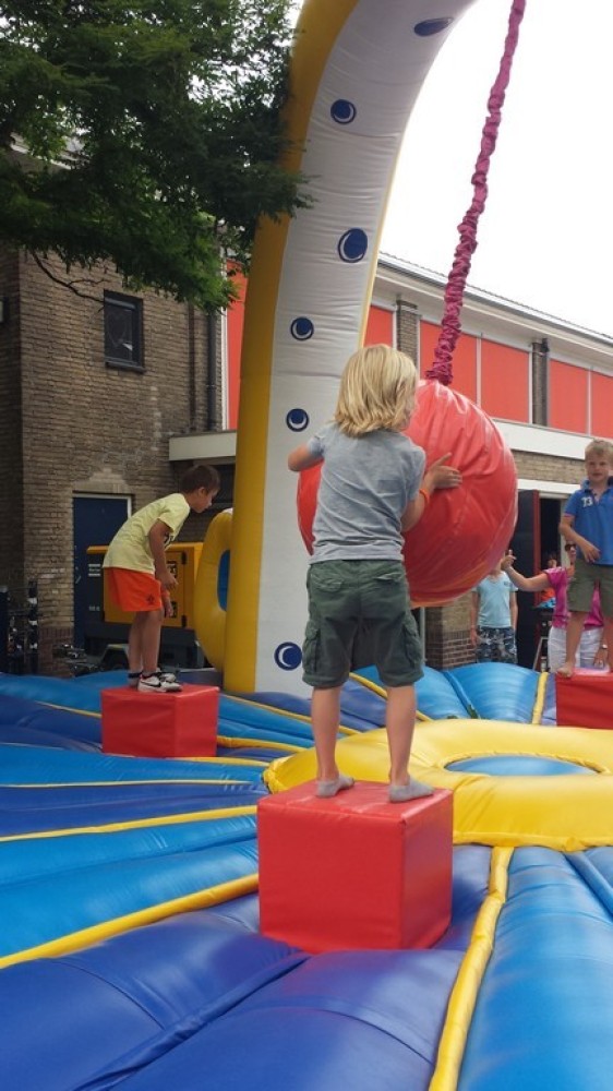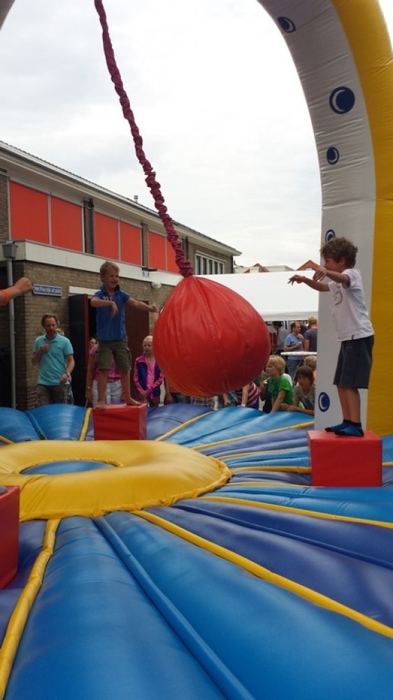 Ga op één van de blokken staan, slinger de bal naar één van je tegenstanders en dan maar hopen dat hij of zij van zijn blok valt. Valt hij ervan af dan mag je nog een keer gooien en is je tegenstander af. Maar blijft hij staan dan mag je tegenstander een poging wagen. Degene die als laatste overblijft, is de winnaar.
