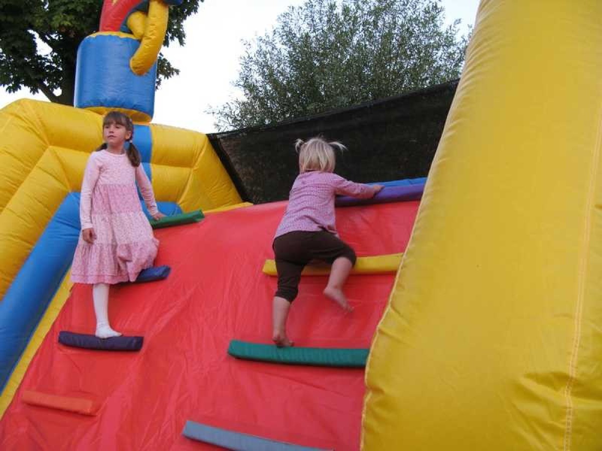 Capaciteit: Stormbaan 2 personen/speelkussen 15 kinderen