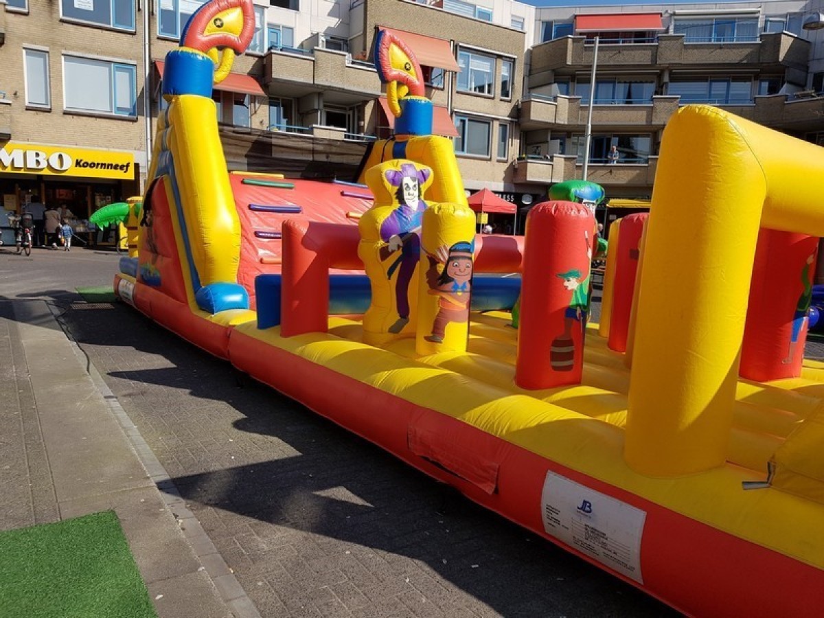 Klimmen, klauteren, duiken, springen en rennen? Alles kan op deze 14 meter lange stormbaan. Dit kussen in cowboy/saloonstijl is voorzien van vele obstakels en leuk voor onderlinge wedstrijdjes op sportdag, vrijgezellenfeest of examenstunt maar kan ook prima als speelkussen worden gebruikt. De stormbanen zijn daarom geschikt voor jong en oud.
