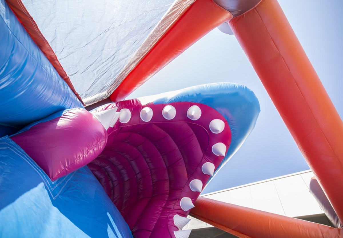Kruipen, klimmen, klauteren, springen en rennen! Alles komt aan bod op dit superleuke kussen. Bezorg de deelnemers de dag van hun leven op deze te gekke stormbaan met haai thema! Wie weet als snelste de obstakels te overwinnen?