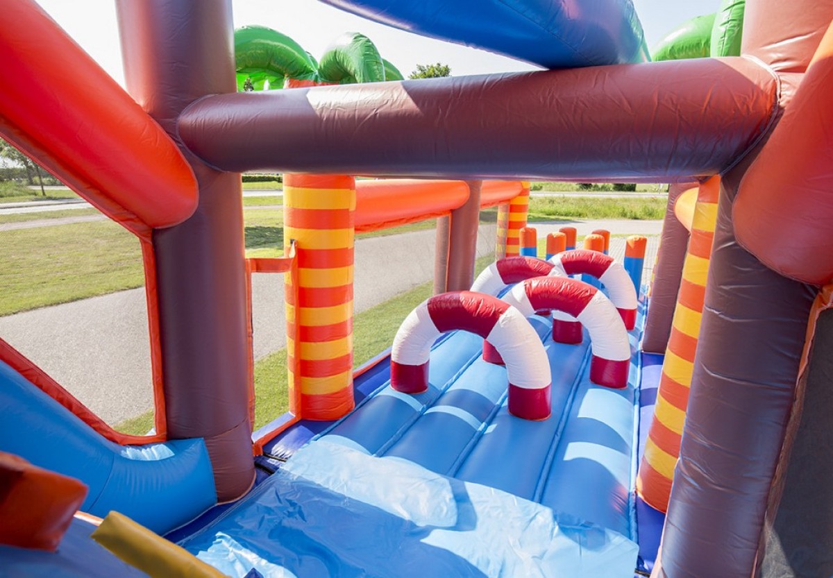 Deze kleurrijke stormbaan is voorzien van vele obstakels en een klauterhelling. De baan is daarom niet alleen leuk voor onderlinge wedstrijdjes of estafette in teamverband maar is ook prima als speelkussen te gebruiken. Een graag gezien object op bijvoorbeeld sportdag, buurtfeest of examenstunt.